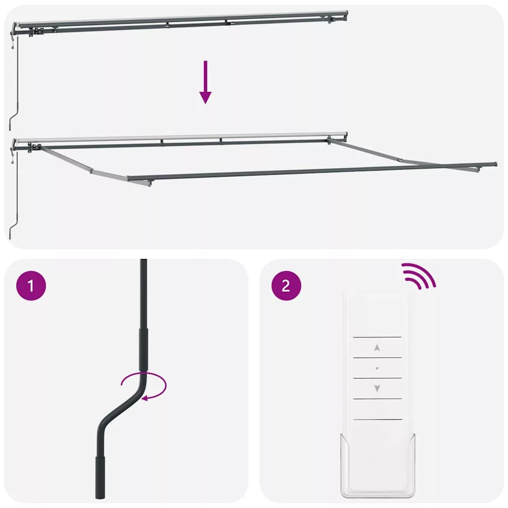 - Automata funkció: A napellenzőt a mellékelt távirányítóval könnyedén kinyithatja és visszahúzhatja.