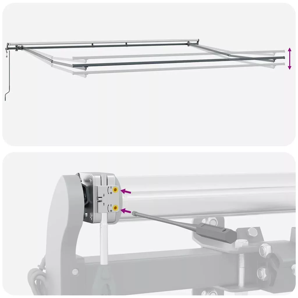 - Könnyen kezelhető: A szög és a magasság állítható, hogy megfeleljen az Ön különböző igényeinek. A napellenző a hosszú hajtókarral zökkenőmentesen nyitható és visszahúzható.