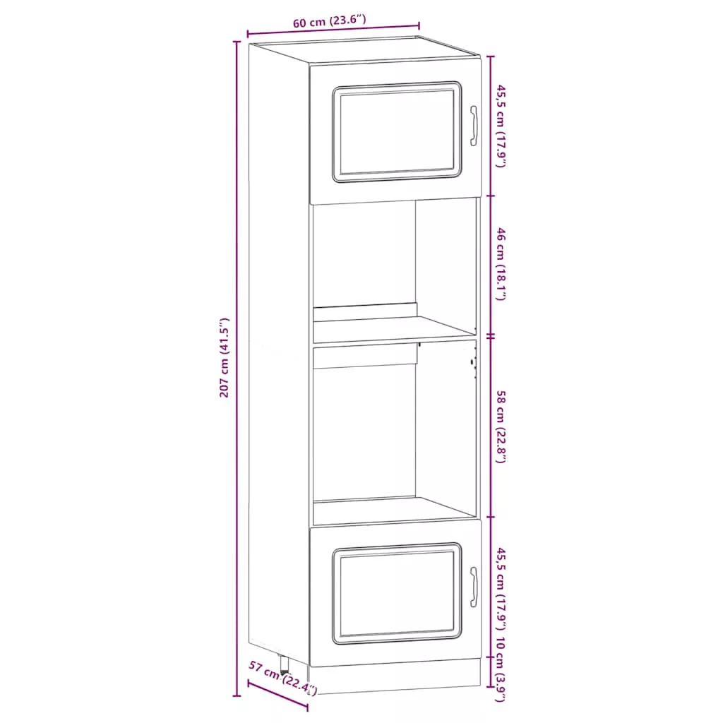 - 1 x konyhaszekrény: 60 x 57 x 207 cm (Sz x M x K)