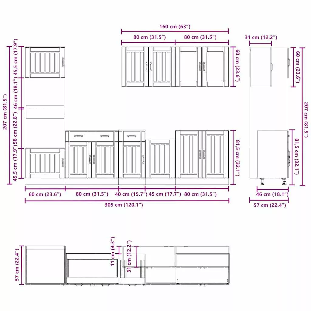 - Bőséges tárolóhely: A konyhaszekrénykészlet számos rekesszel rendelkezik, és elegendő helyet kínál tálak, tányérok, edények és egyéb konyhai eszközök tárolására.
