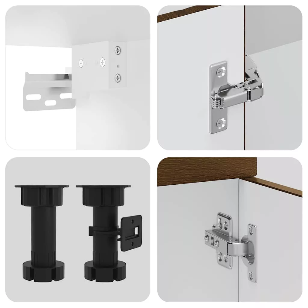- Állítható lábak: Az alsó szekrények állítható lábakkal rendelkeznek, amelyek magassága a konyha elrendezésének megfelelően állítható.