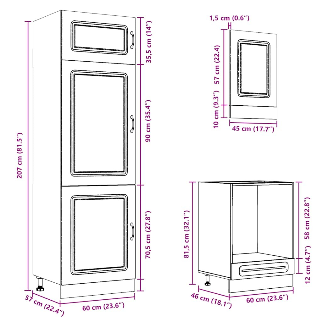 - 1 db szekrény sütőhöz: 60 x 46 x 81,5 cm (Szé x Mé x Ma)