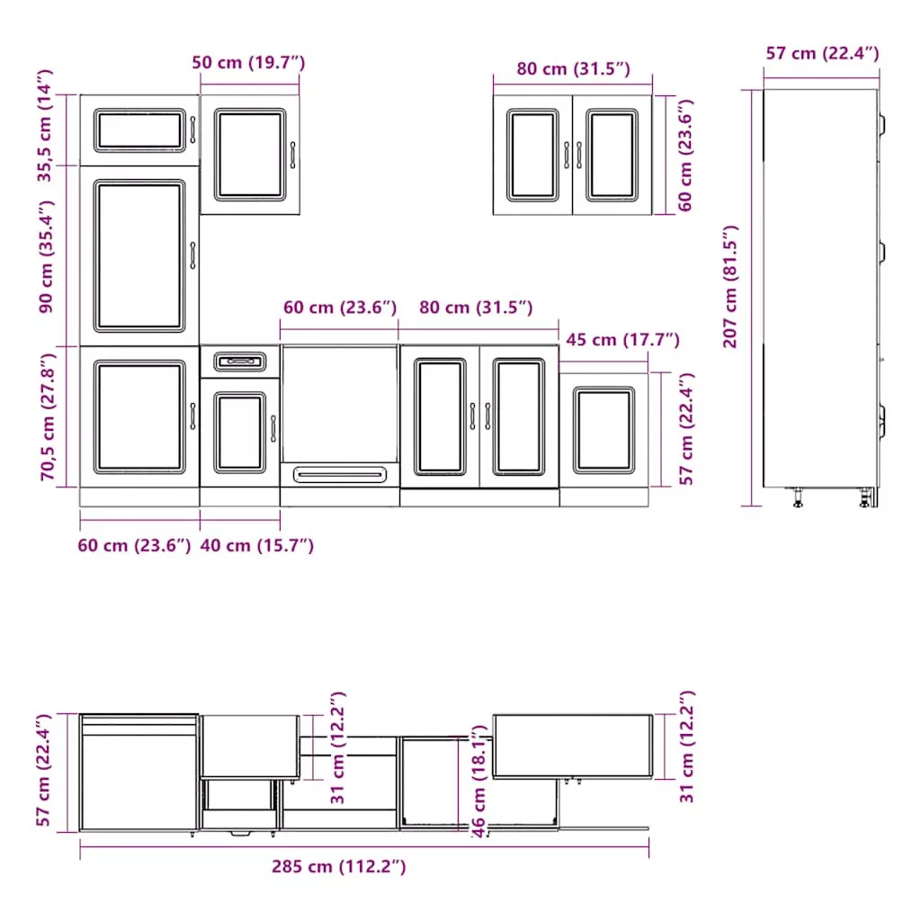 - Bőséges tárolóhely: A konyhaszekrény-garnitúra számos rekesszel rendelkezik, és elegendő helyet kínál tálak, tányérok, edények és egyéb konyhai eszközök tárolására.