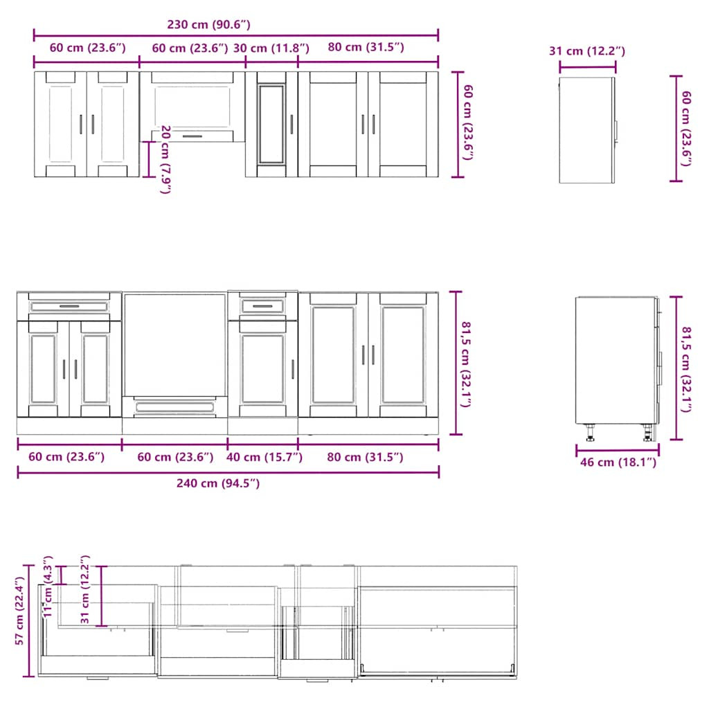 - Bőséges tárolóhely: A konyhaszekrény-garnitúra számos rekesszel rendelkezik, és elegendő helyet kínál tálak, tányérok, edények és egyéb konyhai eszközök tárolására.