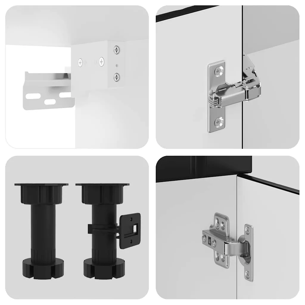 - Állítható lábak: Az alsó szekrények állítható lábakkal rendelkeznek, amelyek magassága a konyha elrendezésének megfelelően állítható.