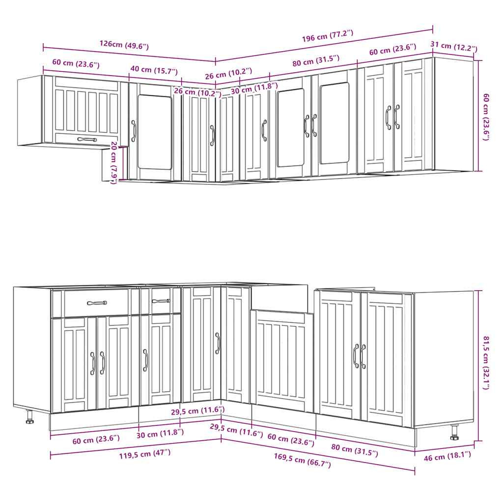 - Bőséges tárolóhely: A konyhaszekrénykészlet számos rekesszel rendelkezik, és elegendő helyet kínál tálak, tányérok, edények és egyéb konyhai eszközök tárolására.