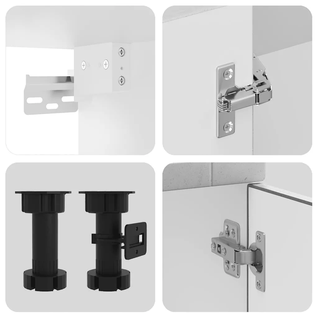 - Állítható lábak: Az alsó szekrények állítható lábakkal rendelkeznek, amelyek magassága a konyha elrendezésének megfelelően állítható.