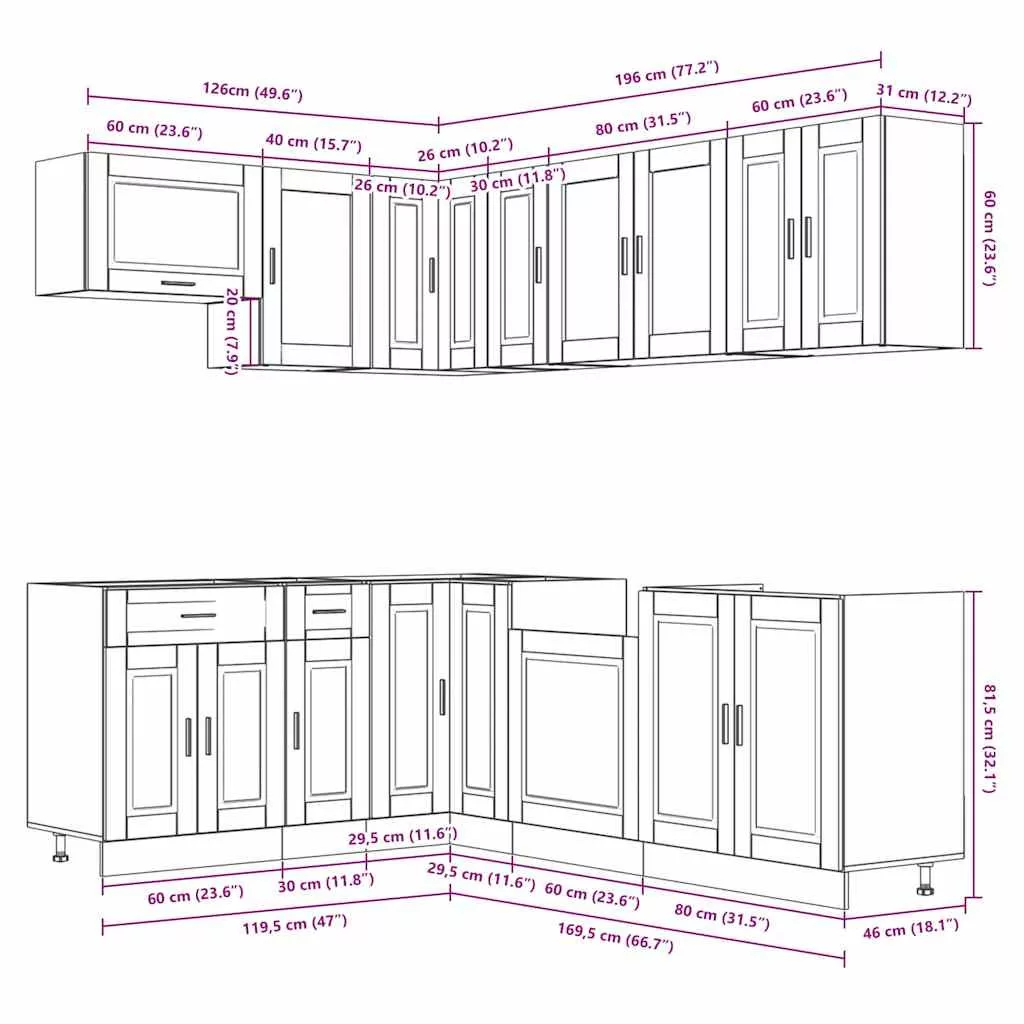 - Bőséges tárolóhely: A konyhaszekrénykészlet számos rekesszel rendelkezik, és elegendő helyet kínál tálak, tányérok, edények és egyéb konyhai eszközök tárolására.
