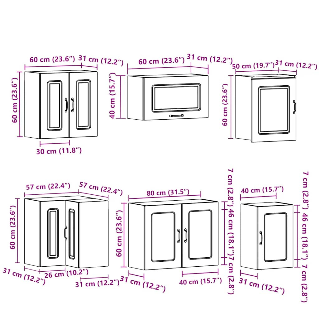 - 1 x konyhai faliszekrény: 80 x 31 x 60 cm (Sz x D x H)