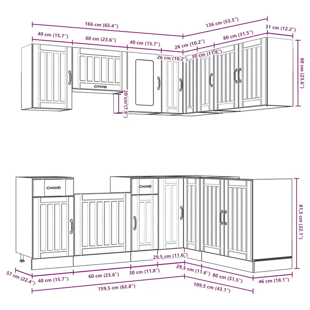 - Bőséges tárolóhely: A konyhaszekrénykészlet számos rekesszel rendelkezik, és elegendő helyet kínál tálak, tányérok, edények és egyéb konyhai eszközök tárolására.
