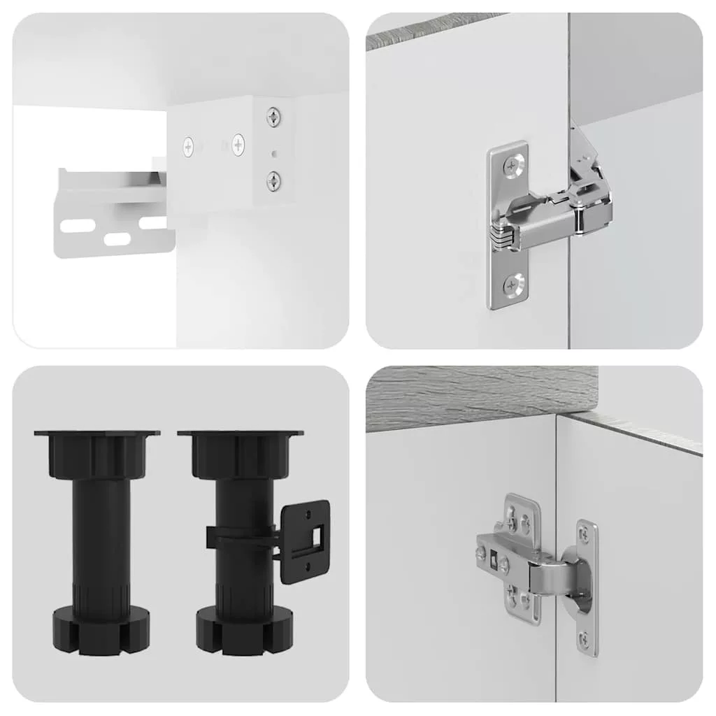 - Állítható lábak: Az alsó szekrények állítható lábakkal rendelkeznek, amelyek magassága a konyha elrendezésének megfelelően állítható.