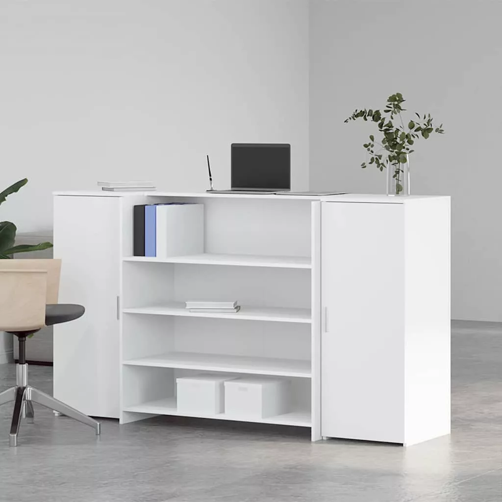 - Bőséges tárolóhely: A recepciós pult és a szekrény bőséges tárolóhelyet kínál irodaszereinek, dokumentumainak, személyes tárgyainak és egyéb alapvető tárgyainak rendezett és könnyen elérhető helyen tartásához.