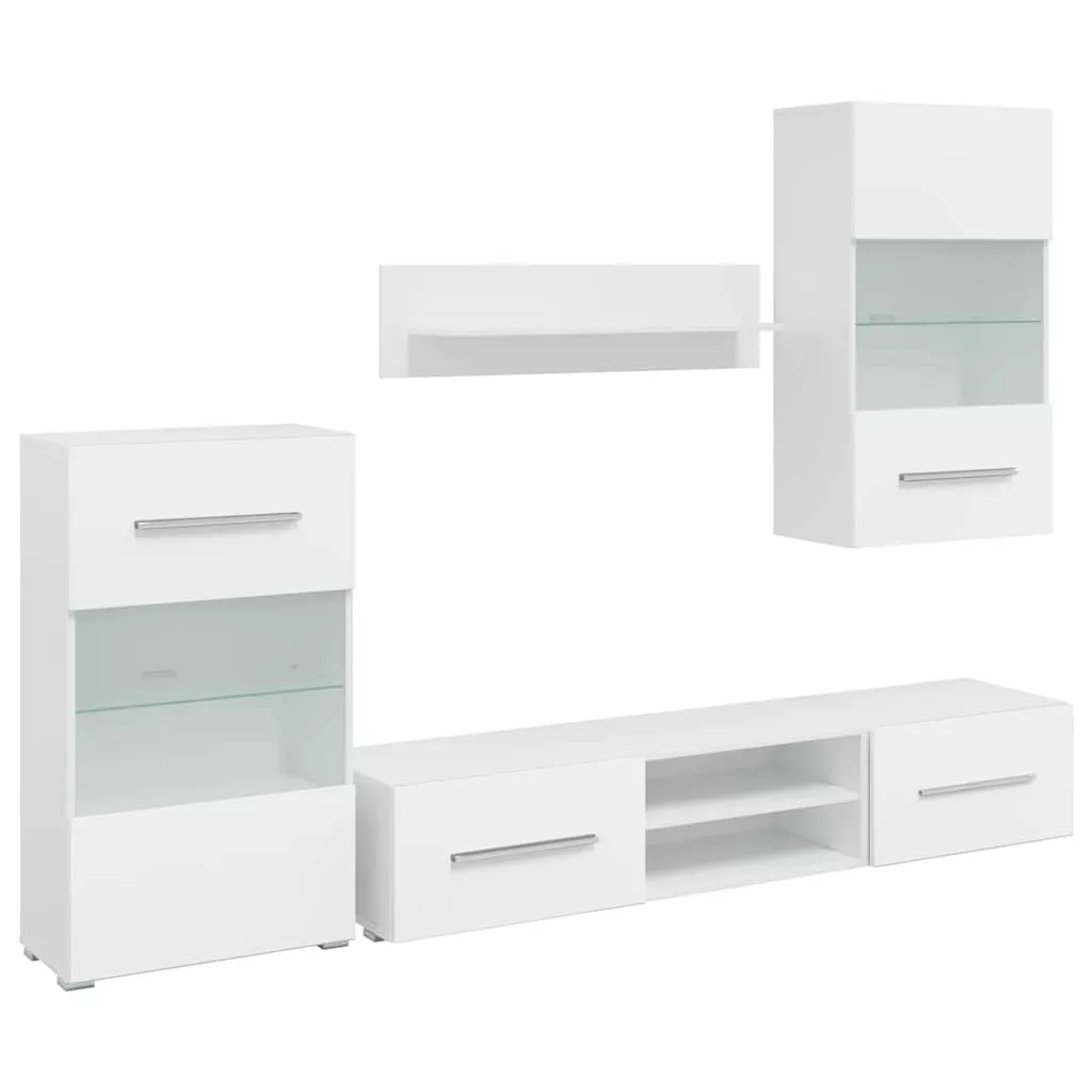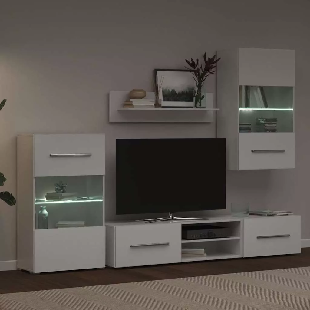 - Bőséges tárolóhely: A készlet tartalmaz egy fali szekrényt, egy álló szekrényt, két alacsony deszkát és egy fali polcot. Sokoldalú tárolási lehetőséget kínál multimédiás eszközök, könyvek és kisebb tárgyak számára, miközben dekoratív kijelzőknek is helyet biztosít.