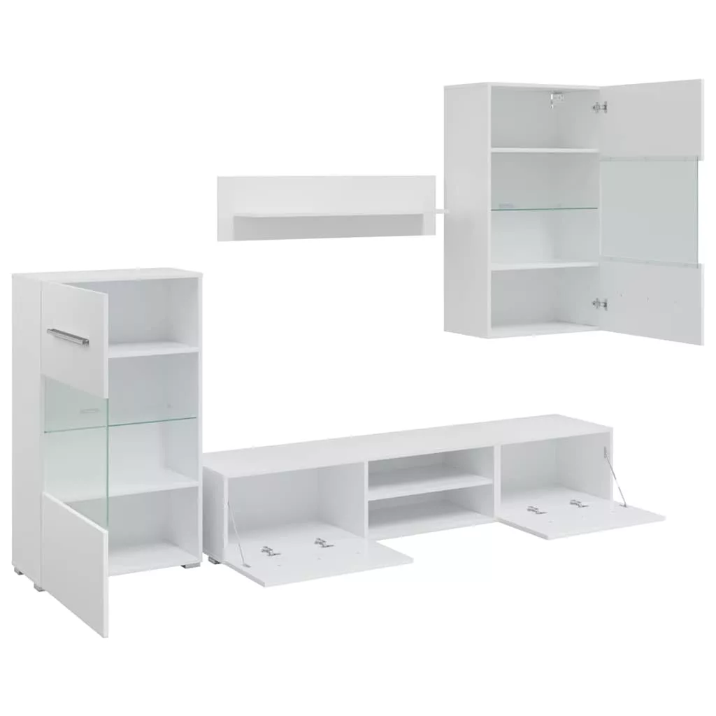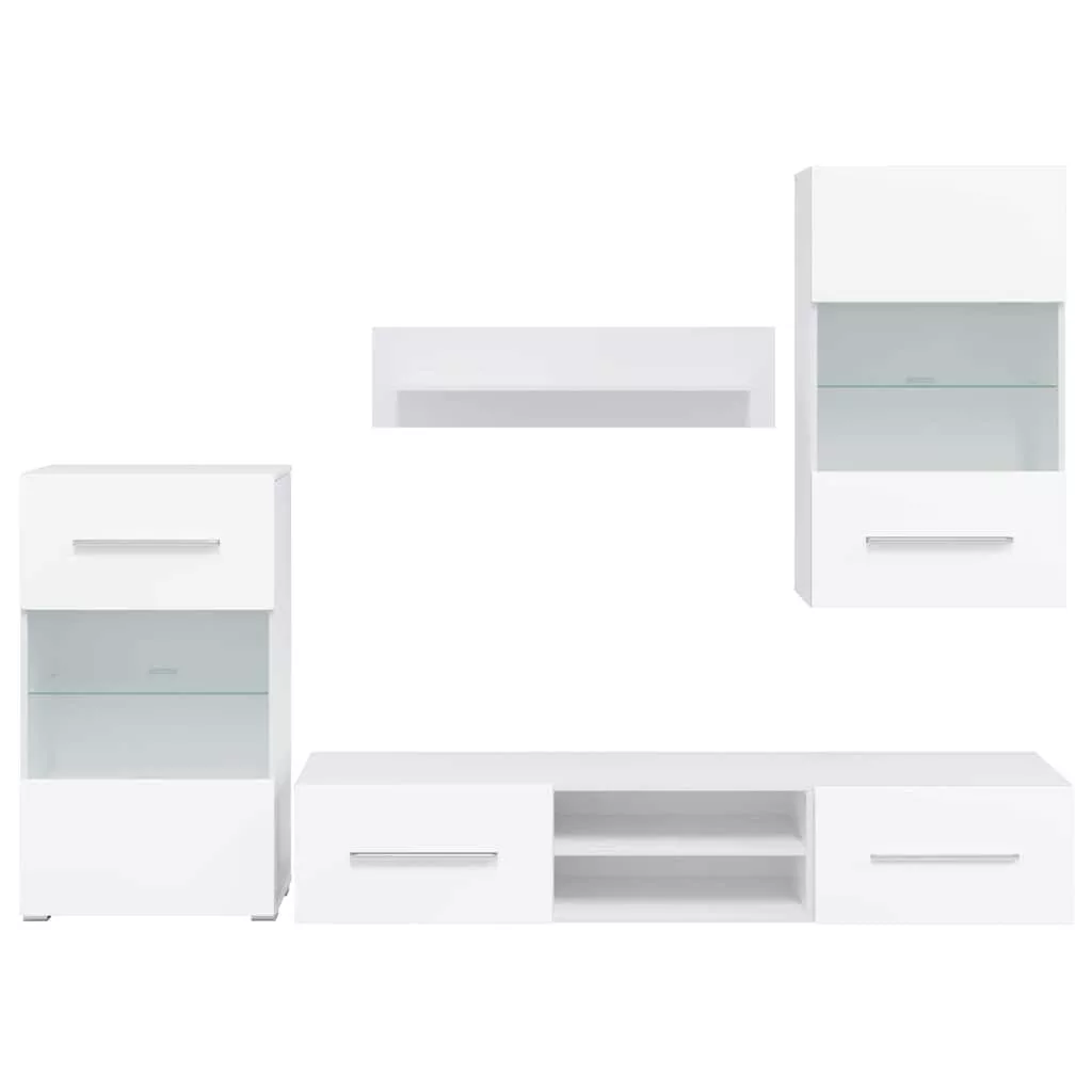- Továbbfejlesztett funkcionalitás: A TV-szekrényeknek lefelé nyíló ajtajai vannak a rejtett tároláshoz. A fali és álló szekrények részben üvegezett ajtókkal és üvegpolccal, valamint energiahatékony LED-világítással rendelkeznek, ami egyszerre praktikus és elegáns.