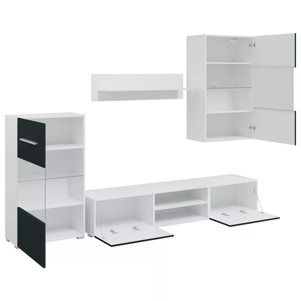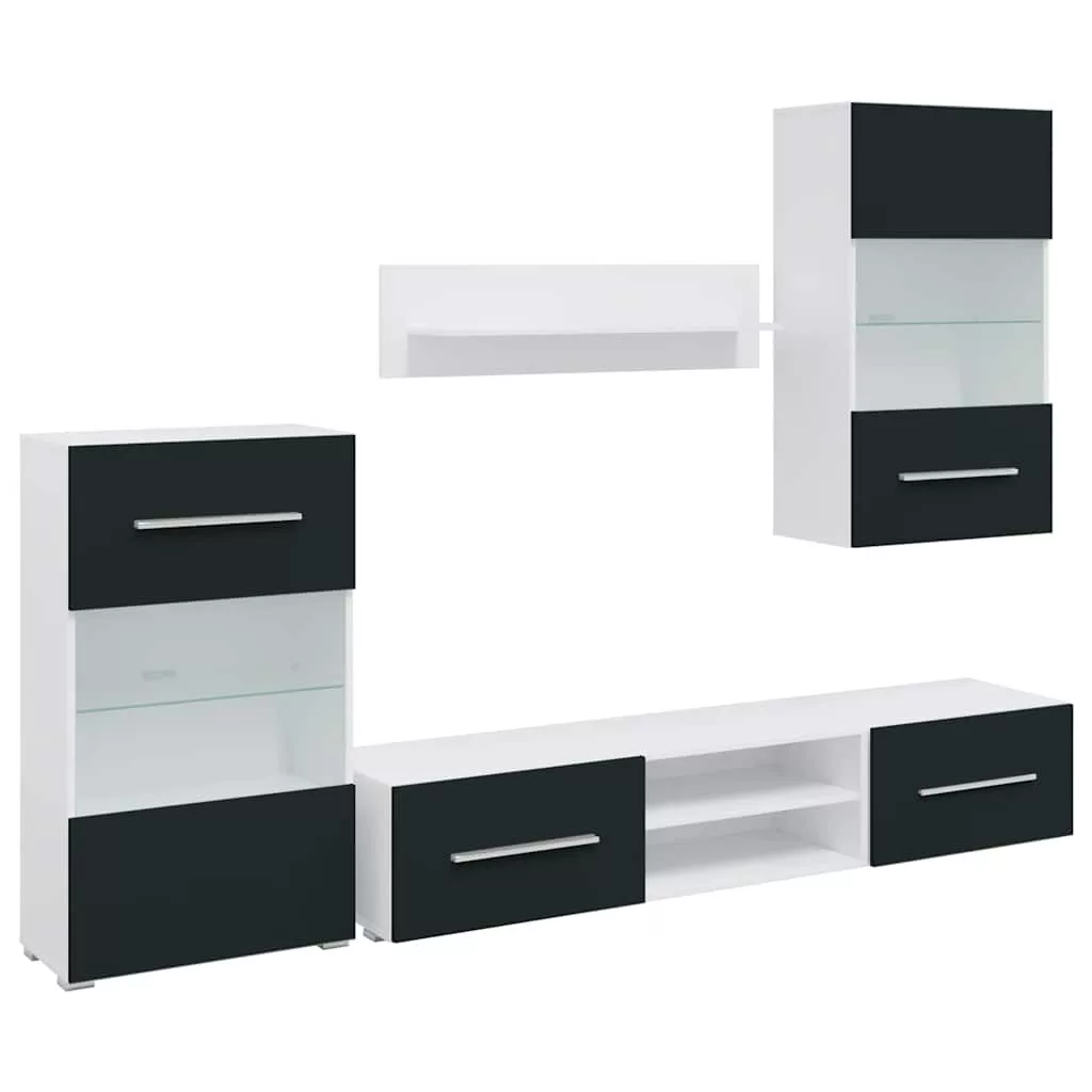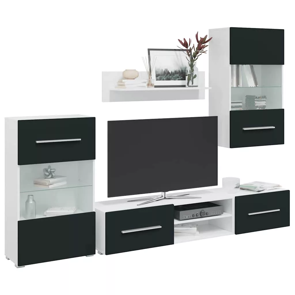 - Bőséges tárolóhely: A készlet tartalmaz egy fali szekrényt, egy álló szekrényt, két alacsony deszkát és egy fali polcot. Sokoldalú tárolási lehetőséget kínál multimédiás eszközök, könyvek és kisebb tárgyak számára, miközben dekoratív kijelzőknek is helyet biztosít.
