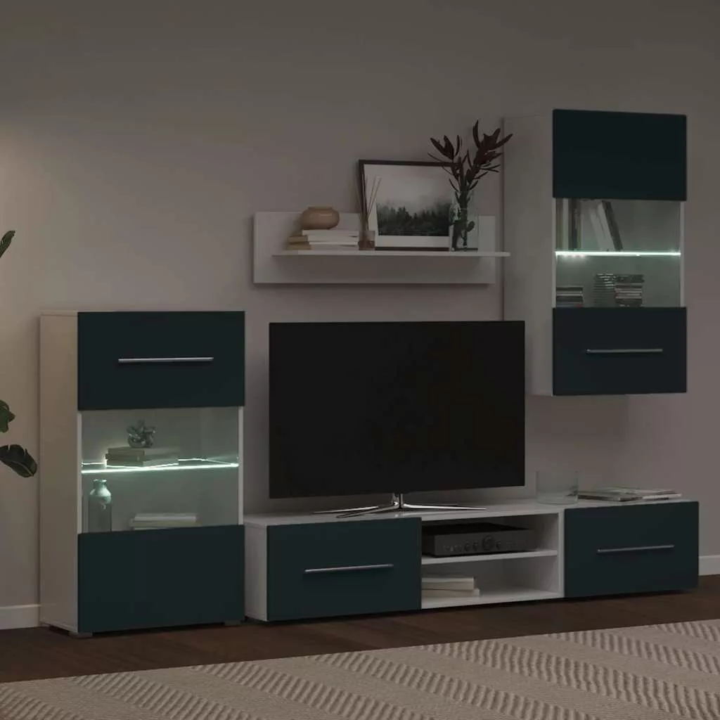 - Továbbfejlesztett funkcionalitás: A TV-szekrényeknek lefelé nyíló ajtajai vannak a rejtett tároláshoz. A fali és álló szekrények részben üvegezett ajtókkal és üvegpolccal, valamint energiahatékony LED-világítással rendelkeznek, ami egyszerre praktikus és elegáns.