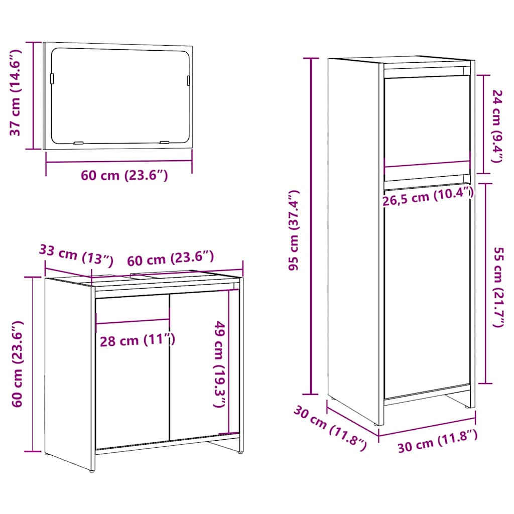 - 1 x Fürdőszobaszekrény: 30 x 30 x 95 cm (Szé x Mé x Ma)