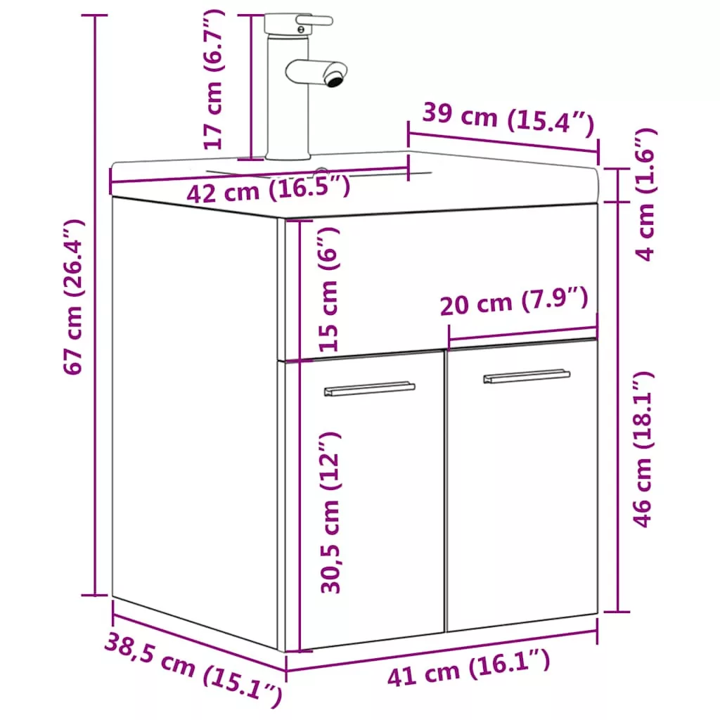 - Mosdókagyló mérete: 42 x 39 x 18 cm (Ho x Szé x Ma)