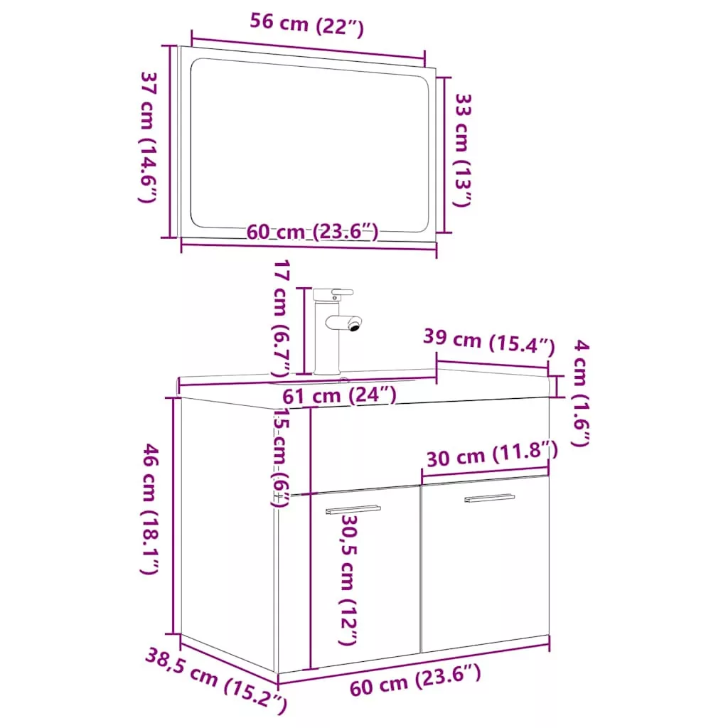 - Mosdószekrény mérete: 60 x 38,5 x 46 cm (Szé x Mé x Ma)