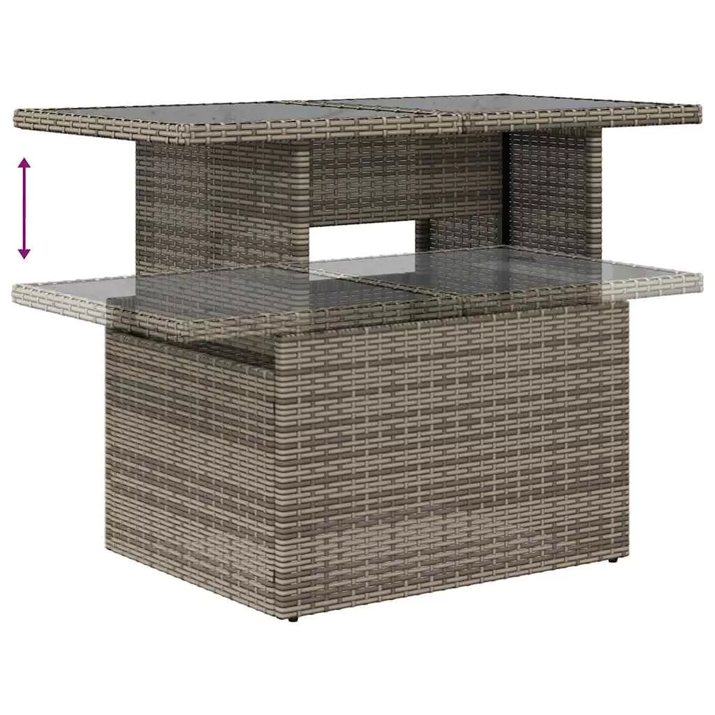 - Állítható asztallap: Az asztallap felemelhető, így az asztal magasabbra tehető, ami a kültéri asztalt dohányzóasztalból étkezőasztallá alakítja. Ideális vendégek fogadásakor vagy kinti étkezéshez.