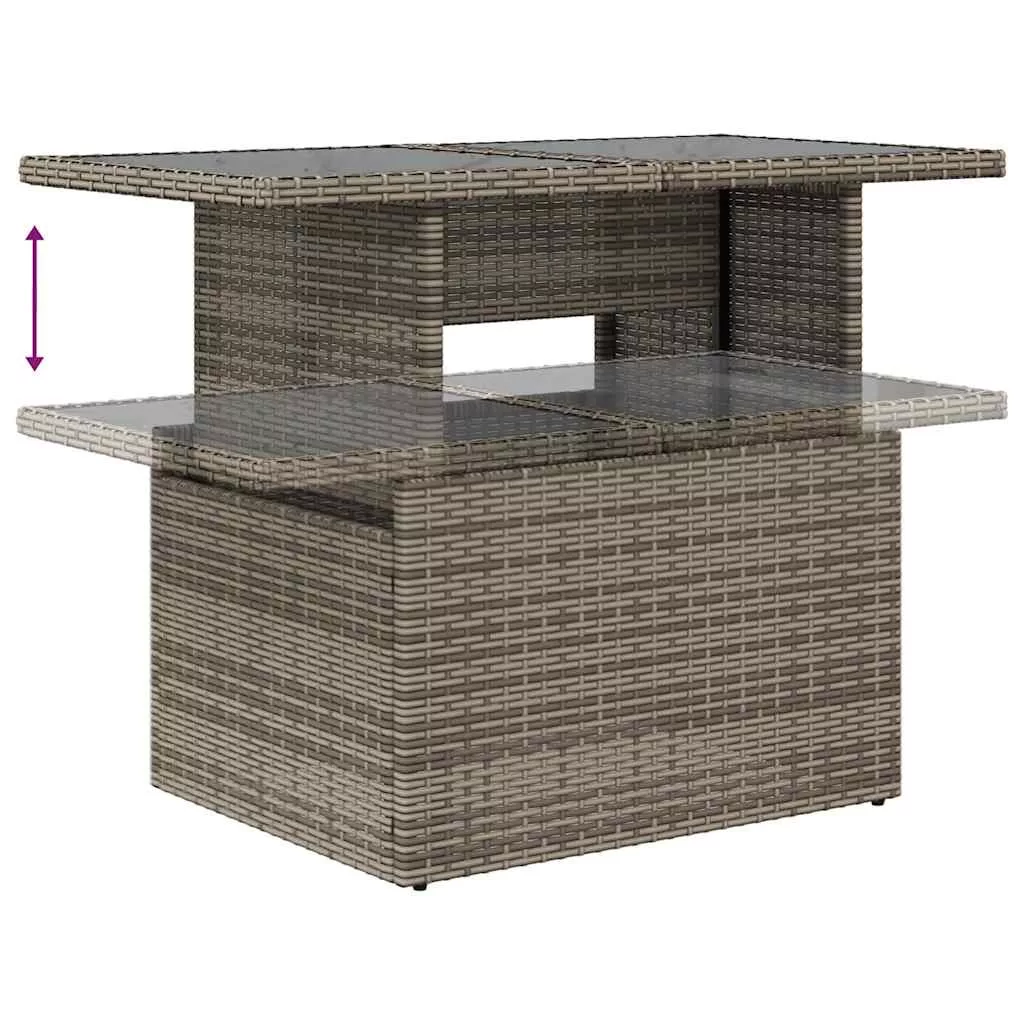 - Állítható asztallap: Az asztallap felemelhető, így az asztal magasabbra tehető, ami a kültéri asztalt dohányzóasztalból étkezőasztallá alakítja. Ideális vendégek fogadásakor vagy kinti étkezéshez.
