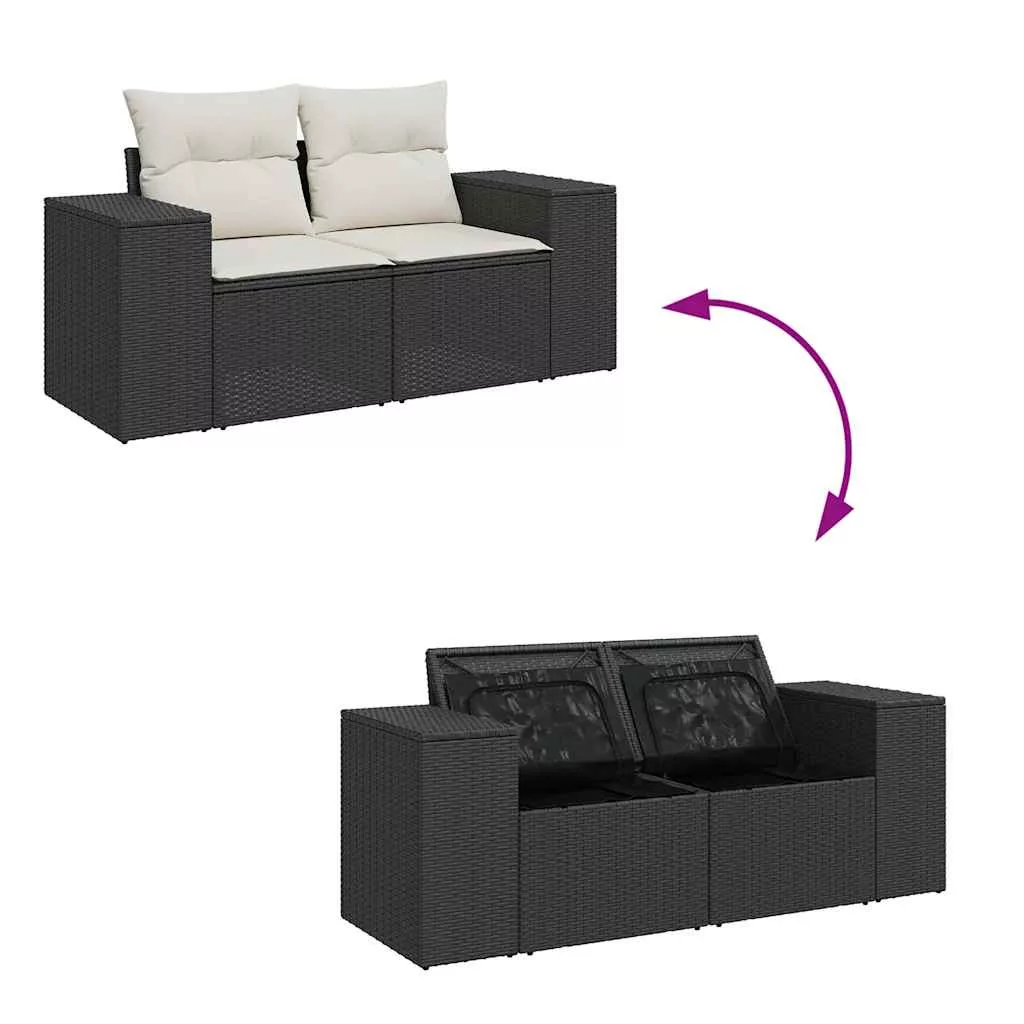 - Tárolási funkció vízálló zsákkal: A kerti bútor tárolóhellyel rendelkezik az ülés alatt, amely egy vízálló zsákkal van kiegészítve a párnák, játékok és egyéb tárgyak tárolására. A belső zsák tépőzáras rögzítőkkel biztonságosan a kültéri bútorhoz rögzíthető a nagyobb stabilitás érdekében.