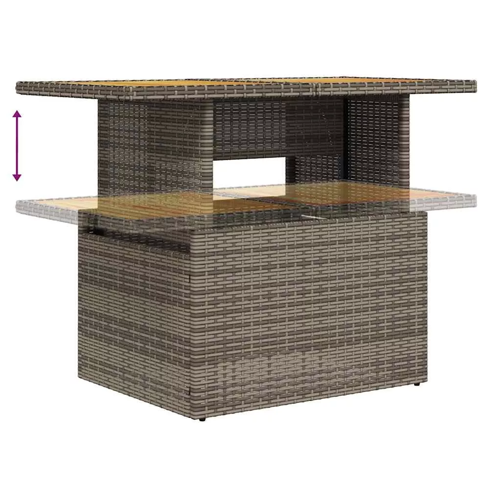 - Állítható asztallap: Az asztallap felemelhető, így az asztal magasabbra tehető, ami a kültéri asztalt dohányzóasztalból étkezőasztallá alakítja. Ideális vendégek fogadásakor vagy kinti étkezéshez.