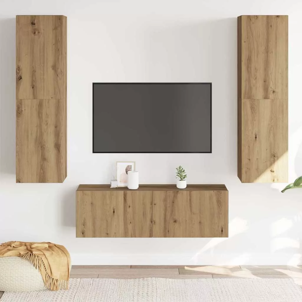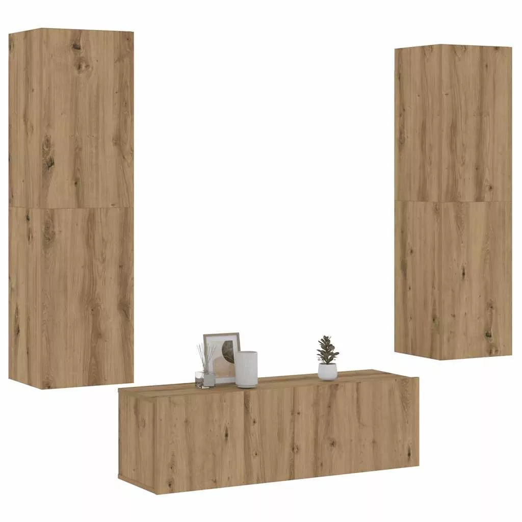 vidaXL fali TV szekrények 3 db kézműves tölgy szerelt fa