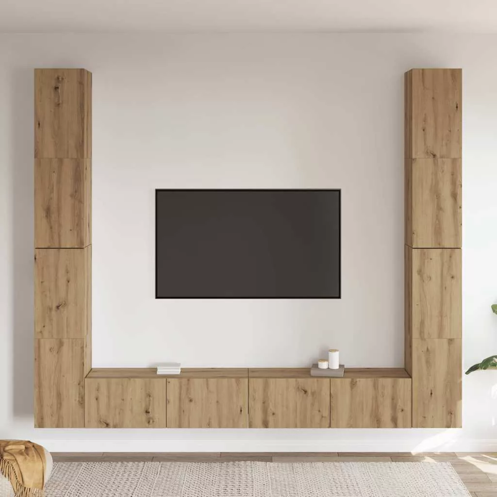 Ezek a falra szerelhető TV-szekrények elegáns és stílusos kialakítással rendelkeznek, így dekoratív és praktikus kiegészítői lehetnek a dekorációnak.