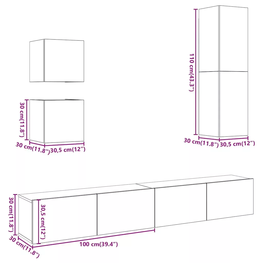 - 2 db TV-szekrény: 100 x 30 x 30 cm (Szé x Mé x Ma)