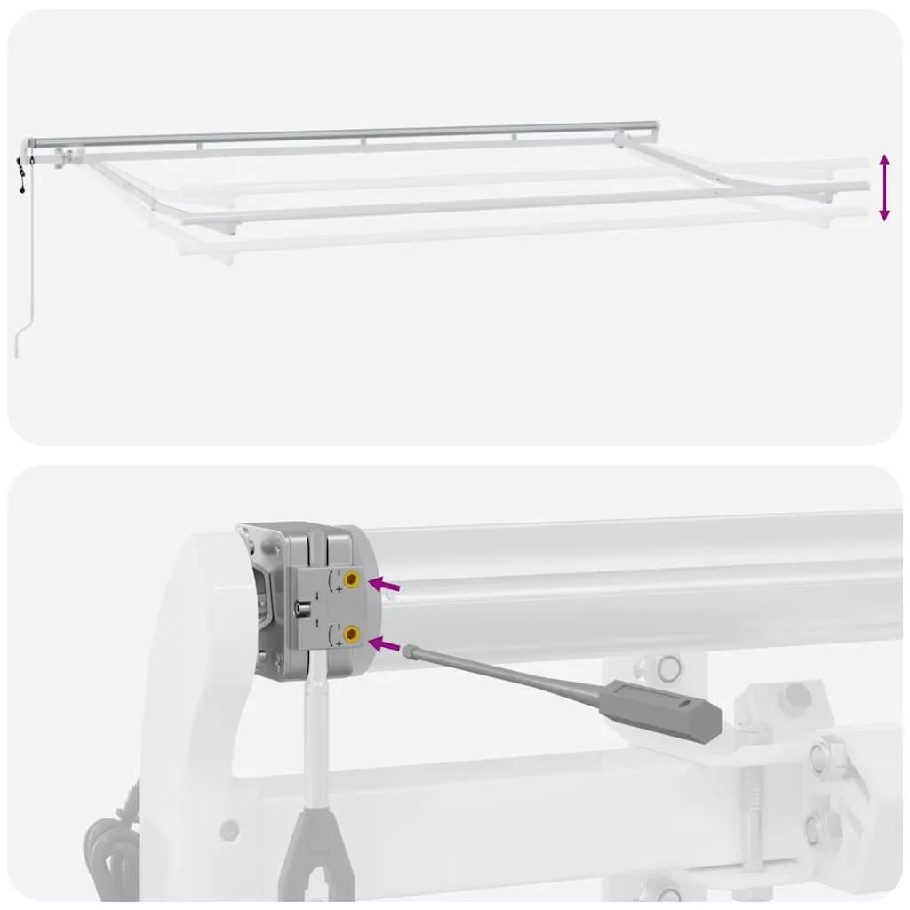 Veszély! Kinyitáskor a rugó erősen kipattan. NE távolítsa el a kötelet addig, amíg az összes összeszerelési lépést be nem fejezte, az összes csavart nem rögzítette és az elem nincs a falhoz rögzítve! Figyelem! Legyen óvatos a karok kilazításakor, mert azok feszültség alatt állnak! Az összecsukható kar hirtelen kiengedése sérülést okozhat. Figyelmeztetés: A termék használata előtt el kell olvasni a használati útmutatót. Figyelem: A fagyos körülmények között történő használat kárt tehet a termékben. Külső felhasználás épületeknél és egyéb építkezéseknél. Ne engedje, hogy a gyerekek a redőny vezérlőeszközével játszanak. Tartsa a távirányítót távol a gyermekektől.