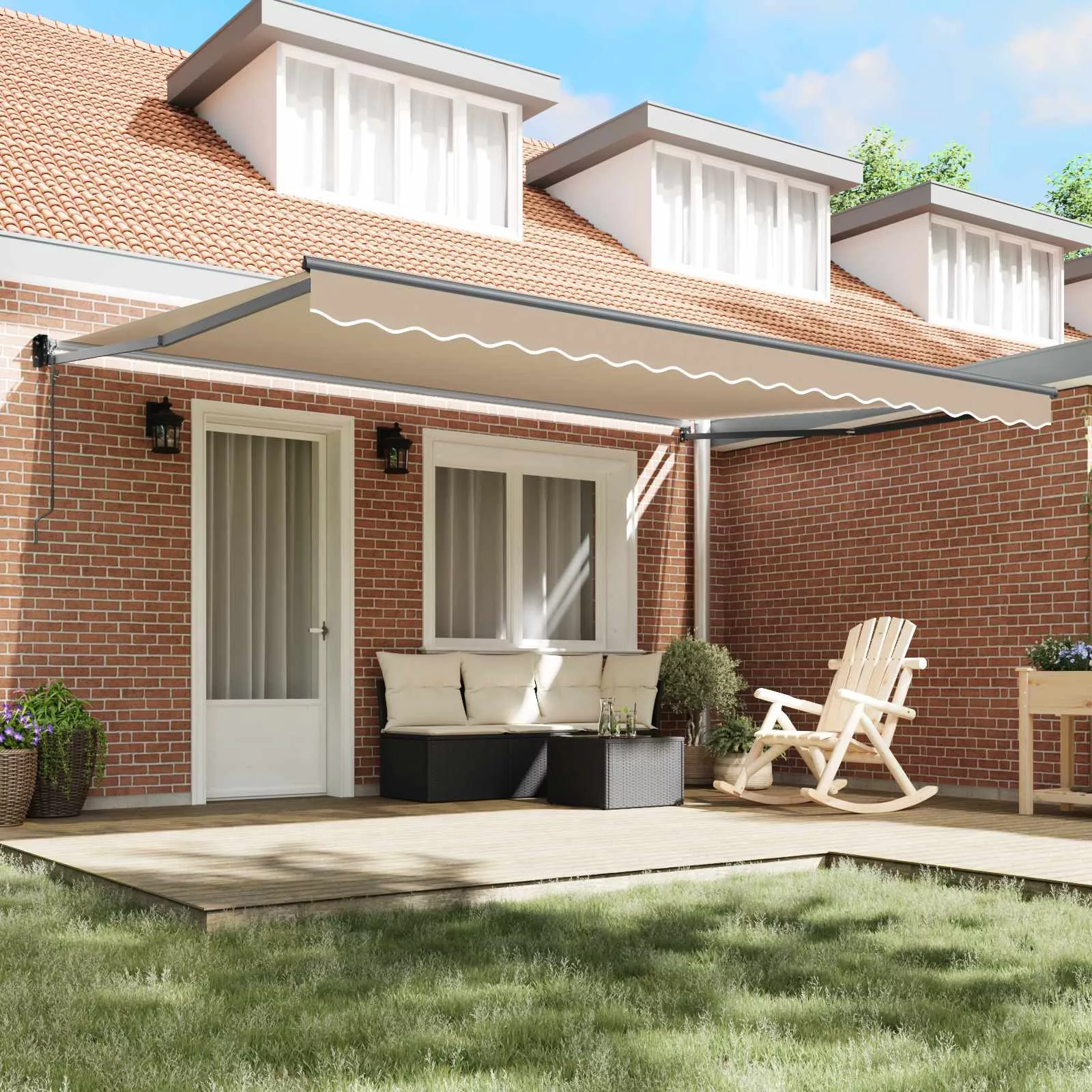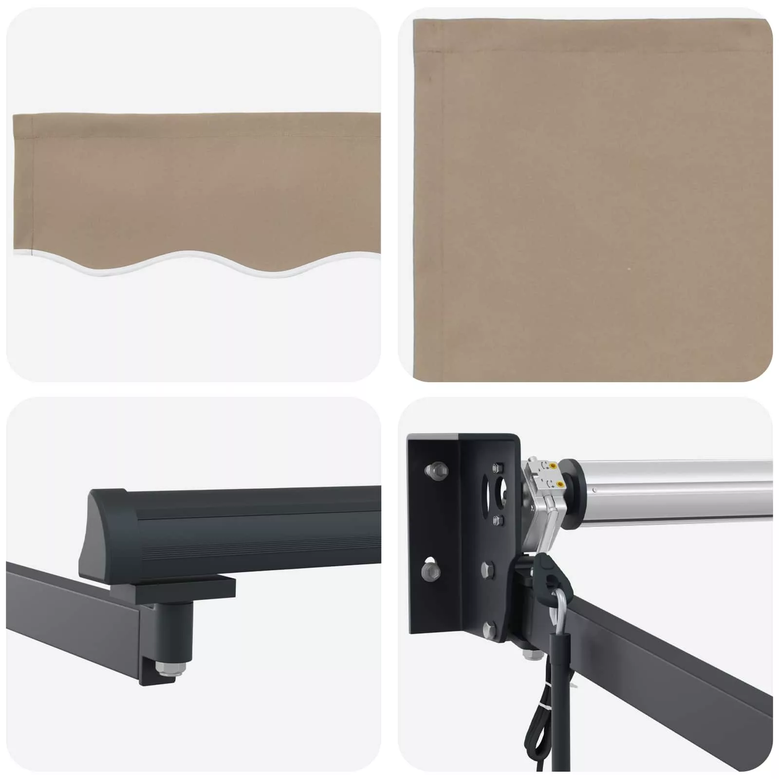 - Modern esztétika A dizájnjának köszönhetően ez az árnyékoló simán beleillik a kortárs kültéri dekorációba. A bézs és antracit színek eleganciát adnak, míg a minimalista stílus kiemeli a teredet, anélkül, hogy túlzásba vinné, így harmonikus kültéri hangulatot teremt.