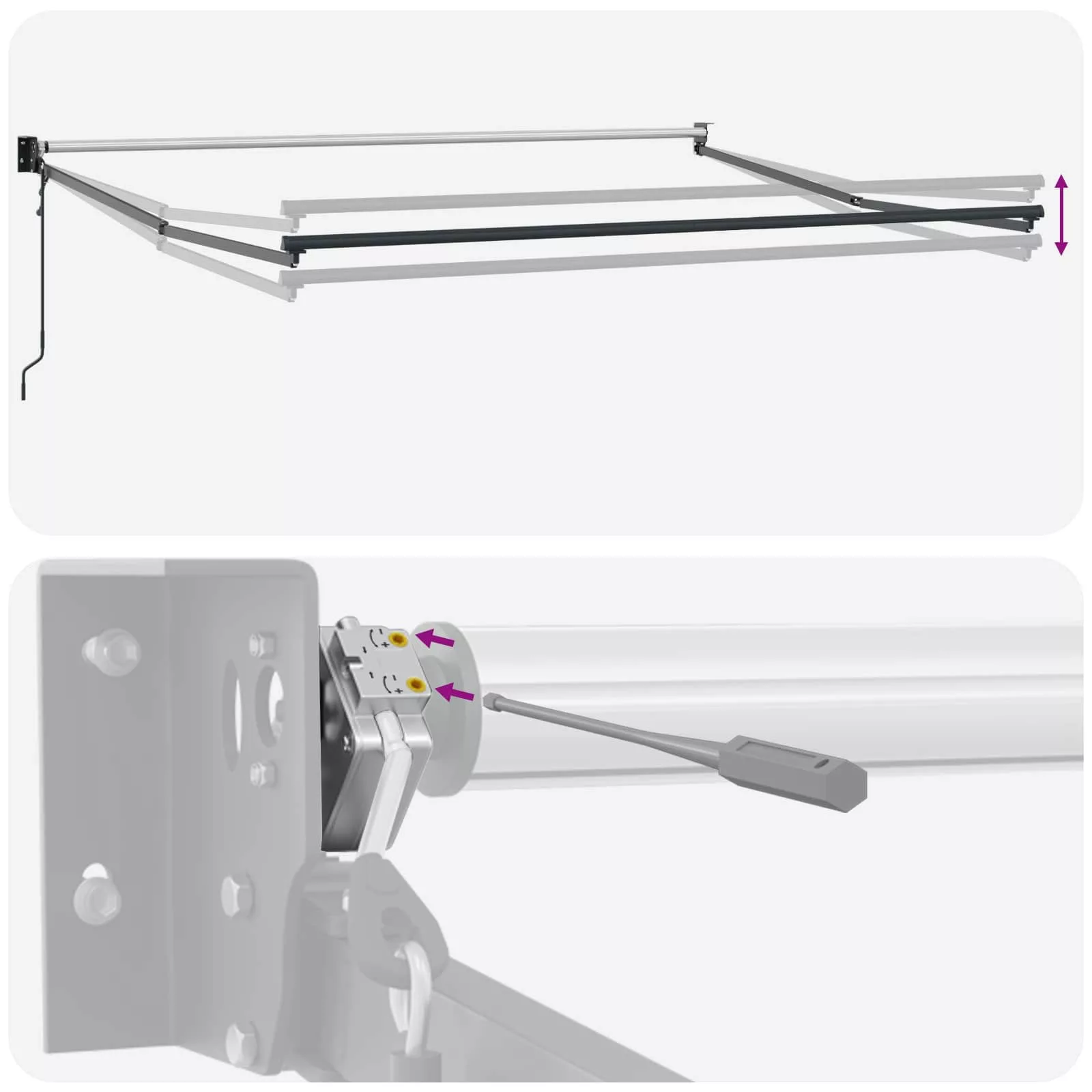 - Összeszerelési részletek Az árnyékoló egyben érkezik, felső résszel és kerettel, amit két ember könnyen összerakhat csavarhúzóval. Az összeszerelés gyors és egyszerű, így gyorsan feldobhatod a tered ezzel a praktikus kiegészítővel.