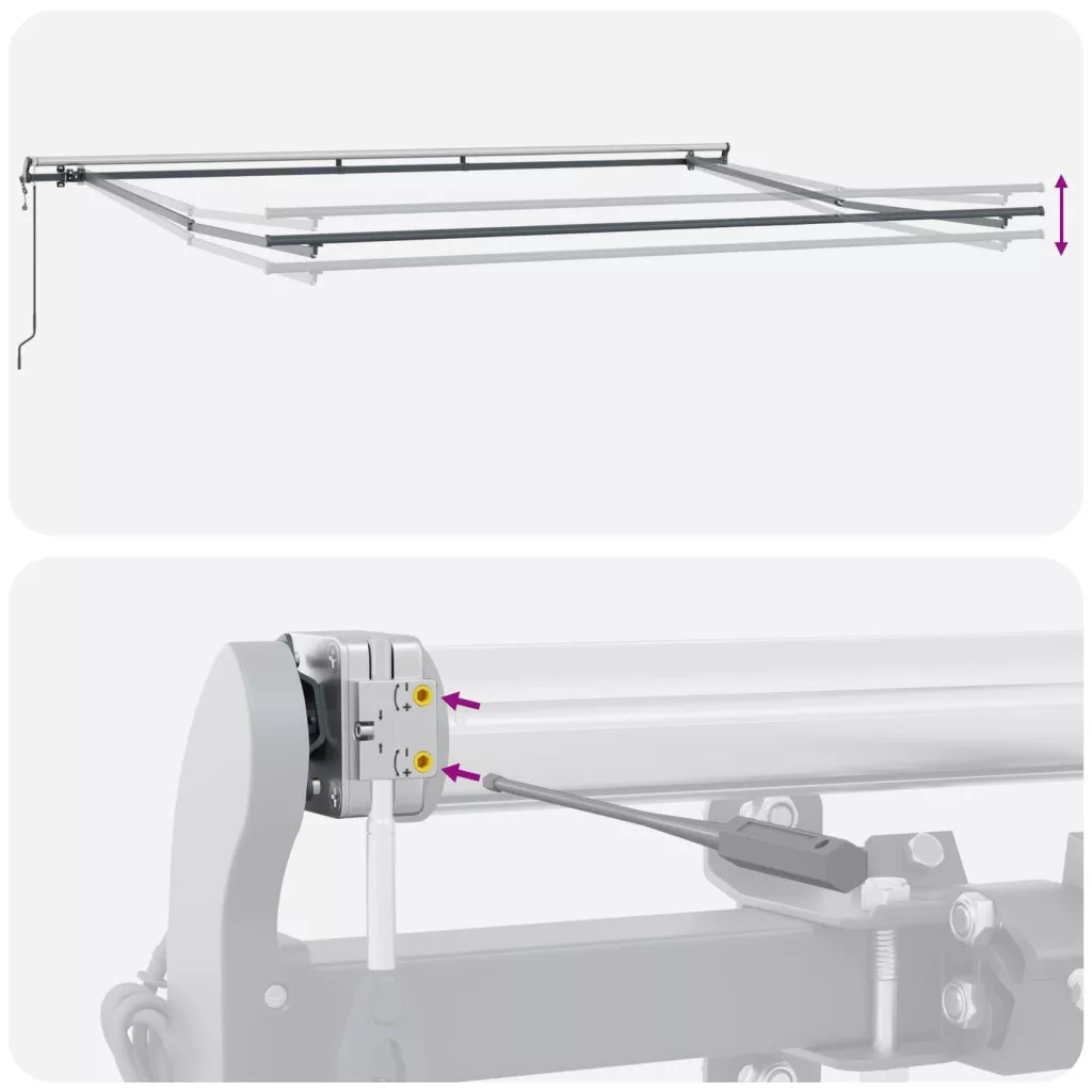 - Altalános alkotóelemek: A csomagban minden fontos elem benne van: napellenző anyag, erős alumínium keret és távirányító a könnyű működtetéshez. Ezek mind hozzájárulnak a használat egyszerűségéhez és a zökkenőmentes működéshez.