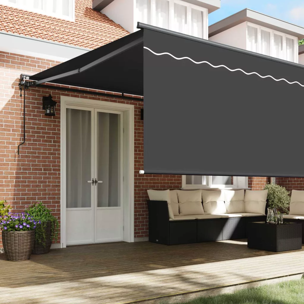 Ez a modern behúzható napellenző a legjobb megoldás kültéri terekhez, mint kertek vagy teraszok. Az elegáns antracit szín és a letisztult dizájn segít, hogy a kültéri tér összhangban legyen, miközben funkcionalitást is ad. Tökéletes társ a kültéri összejövetelekhez, vagy ha egyszerűen csak árnyékra van szükséged, ez a napellenző nagyon jól ötvözi a stílust a praktikus igényekkel.