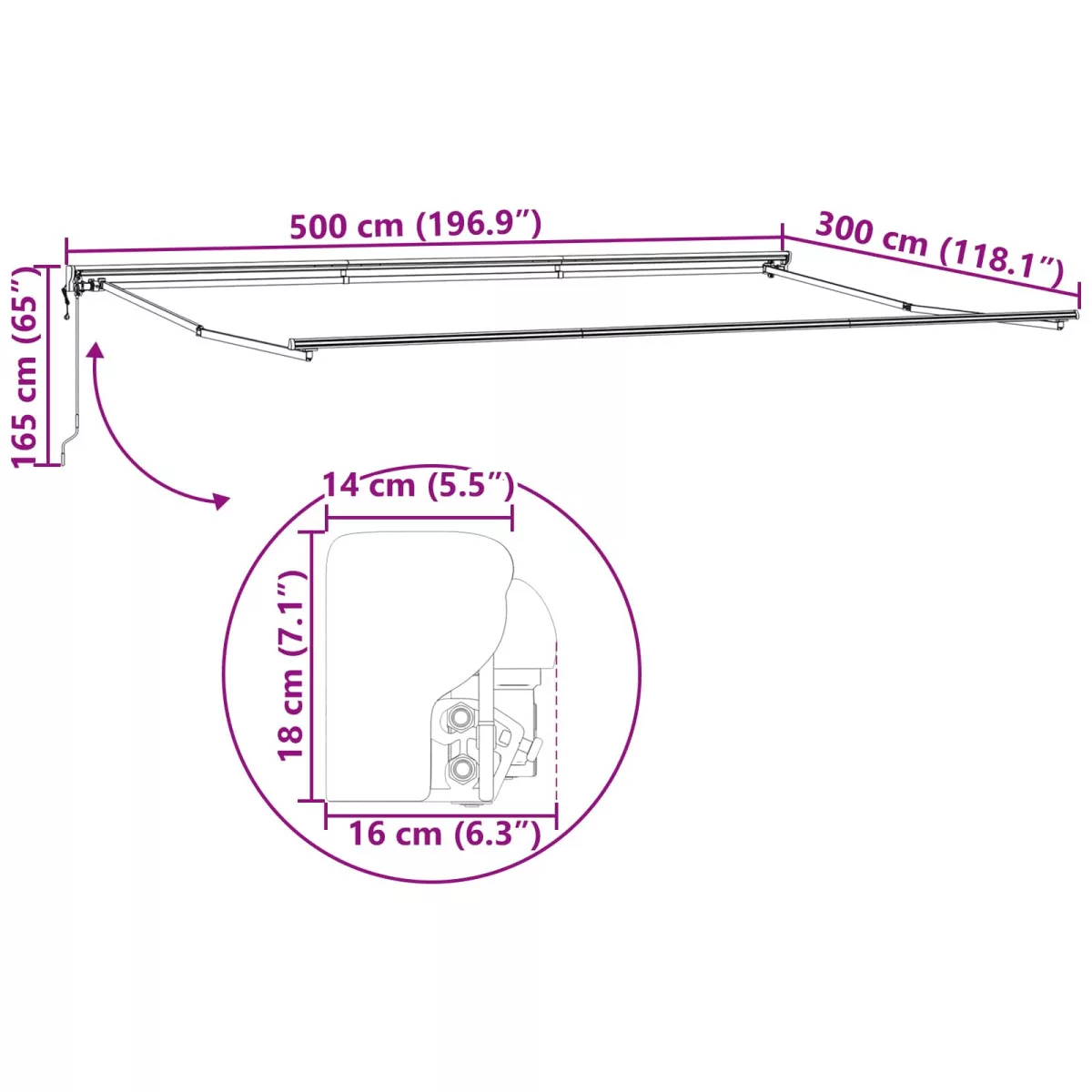 Ez a behúzható napellenző praktikus árnyékot nyújt a kültéri helyiségeknek, mint kertek és teraszok. Könnyen kihúzható vagy behúzható, szóval simán állíthatod, mennyi napfényre vagy árnyékra van szükséged. Remek választás tevékenységekhez, mint a kerti étkezés, pihenés vagy vendégfogadás, hiszen kellemes környezetet teremt, védelmet adva a nap és az enyhe eső ellen. A napellenző tökéletes eszköz a kültéri helyek maximális kihasználásához egész évben.