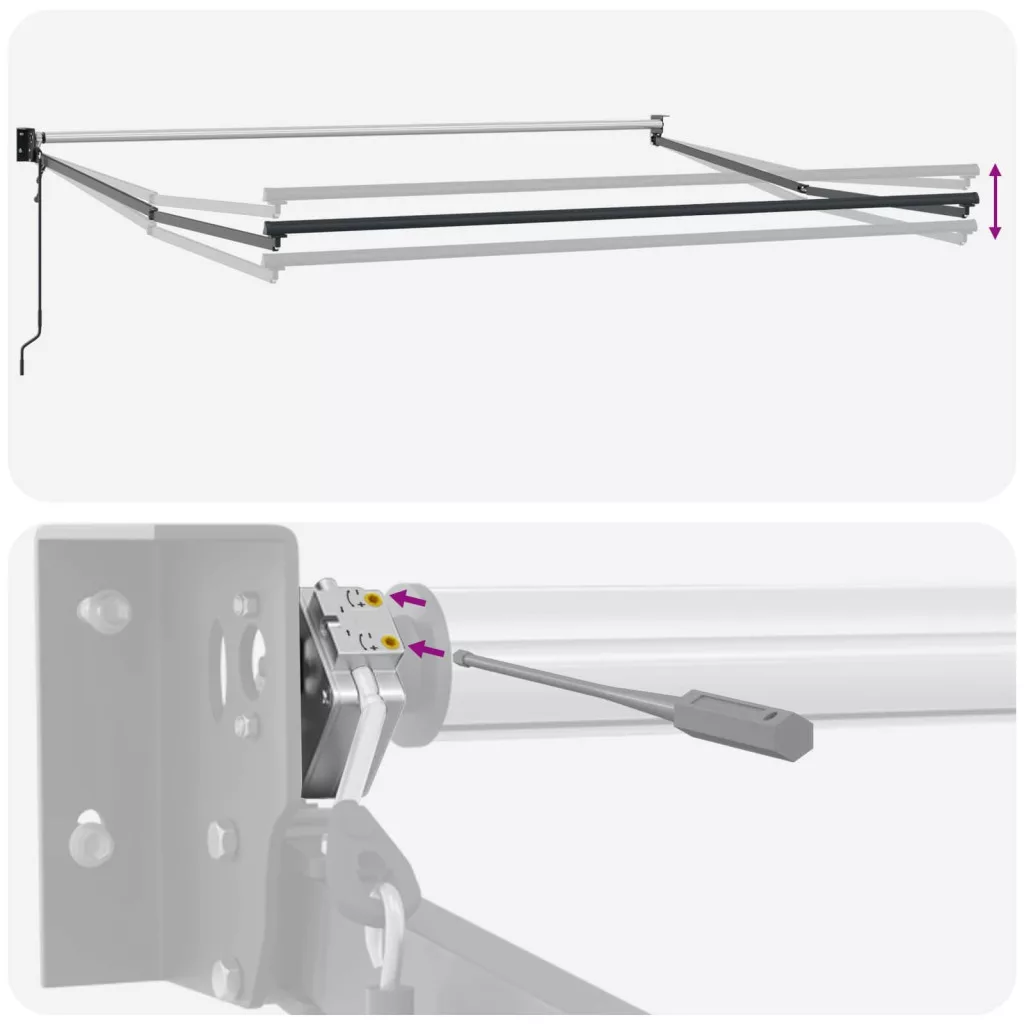 Ez a készülék 8 éves vagy annál idősebb gyermekek, valamint csökkent fizikai, érzékszervi vagy mentális képességekkel rendelkező személyek, vagy tapasztalatlanok és tudás híján lévők számára is használható, ha megfelelő felügyeletet kaptak, vagy útmutatást kaptak a készülék biztonságos használatáról, és megértik a vele járó veszélyeket. A gyermekek nem játszhatnak a készülékkel. A tisztítást és karbantartást a gyermekek nem végezhetik felügyelet nélkül. Ha a tápkábel sérült, azt a gyártónak, annak szervizügynökének vagy hasonlóan képzett személynek kell kicserélnie, hogy elkerülje a veszélyeket. FIGYELEM: Fontos biztonsági utasítások. Az emberek biztonsága érdekében fontos, hogy kövessük ezeket az utasításokat. Őrizze meg ezeket az utasításokat. FIGYELEM: Fontos biztonsági utasítások. Kövesse az összes utasítást, mivel a helytelen telepítés súlyos sérüléshez vagy akár halálhoz vezethet. Ne engedje, hogy gyermekek játsszanak a vezérlő eszközzel. Tartsa a távirányítót távol a gyermekektől. Ne működtesse a napernyőt, miközben karbantartást, például ablakmosást végeznek a közelben. A meghajtó mozgó alkatrészeit legalább 2,5 m magasságban kell telepíteni a padlóról, vagy más olyan szinten, amely hozzáférést biztosíthat hozzájuk. A meghajtó telepítése előtt távolítsa el az összes felesleges vezetéket, és kapcsolja ki azokat az eszközöket, amelyek nem szükségesek a működtetéshez. Az eltorzított kikapcsoló kapcsoló működtető eleme közvetlen látótávolságon belül legyen a meghajtott részhez, de távol a mozgó alkatrészektől. Minimum 1,5 m magasságban kell telepíteni.Veszély! Kinyitáskor a rugó erősen kipattan. NE távolítsa el a kötelet addig, amíg az összes összeszerelési lépést be nem fejezte, az összes csavart nem rögzítette és az elem nincs a falhoz rögzítve! Figyelem! Legyen óvatos a karok kilazításakor, mert azok feszültség alatt állnak! Az összecsukható kar hirtelen kiengedése sérülést okozhat. Figyelmeztetés: A termék használata előtt el kell olvasni a használati útmutatót. Figyelem: A fagyos körülmények között történő használat kárt tehet a termékben. Külső felhasználás épületeknél és egyéb építkezéseknél.
