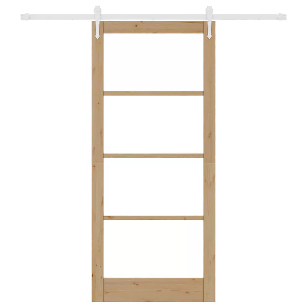 - Tömör fenyőfa és üveg: Az ajtó tömör fenyőből készült, átlátszó üvegekkel, amellyel egy erős és elegáns megjelenés érhető el. A fenyőkeret stabil és tartós, míg az üveg világosságot varázsol a térbe, zökkenőmentesen összekapcsolva a helyiségeket.
