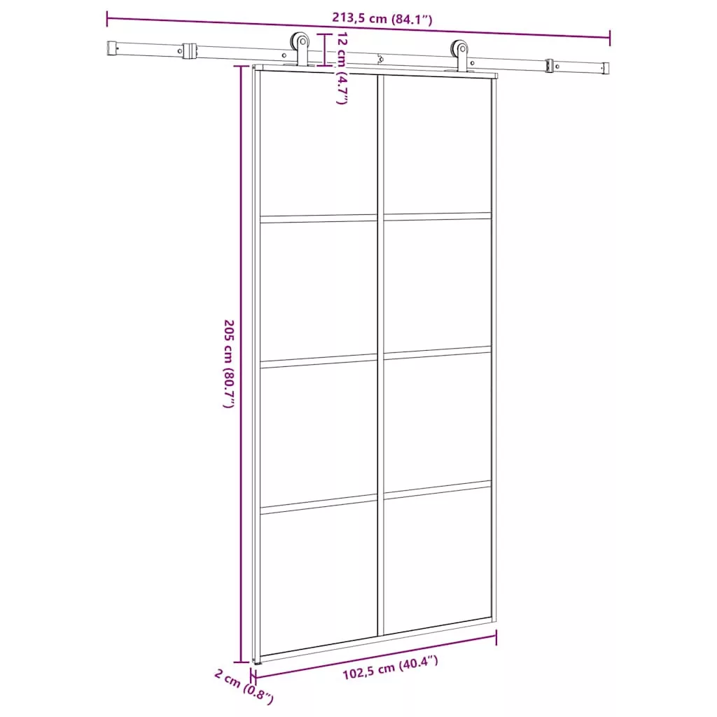 vidaXL ESG üveg-alumínium tolóajtó fémszerelvény-szettel 102,5x205 cm