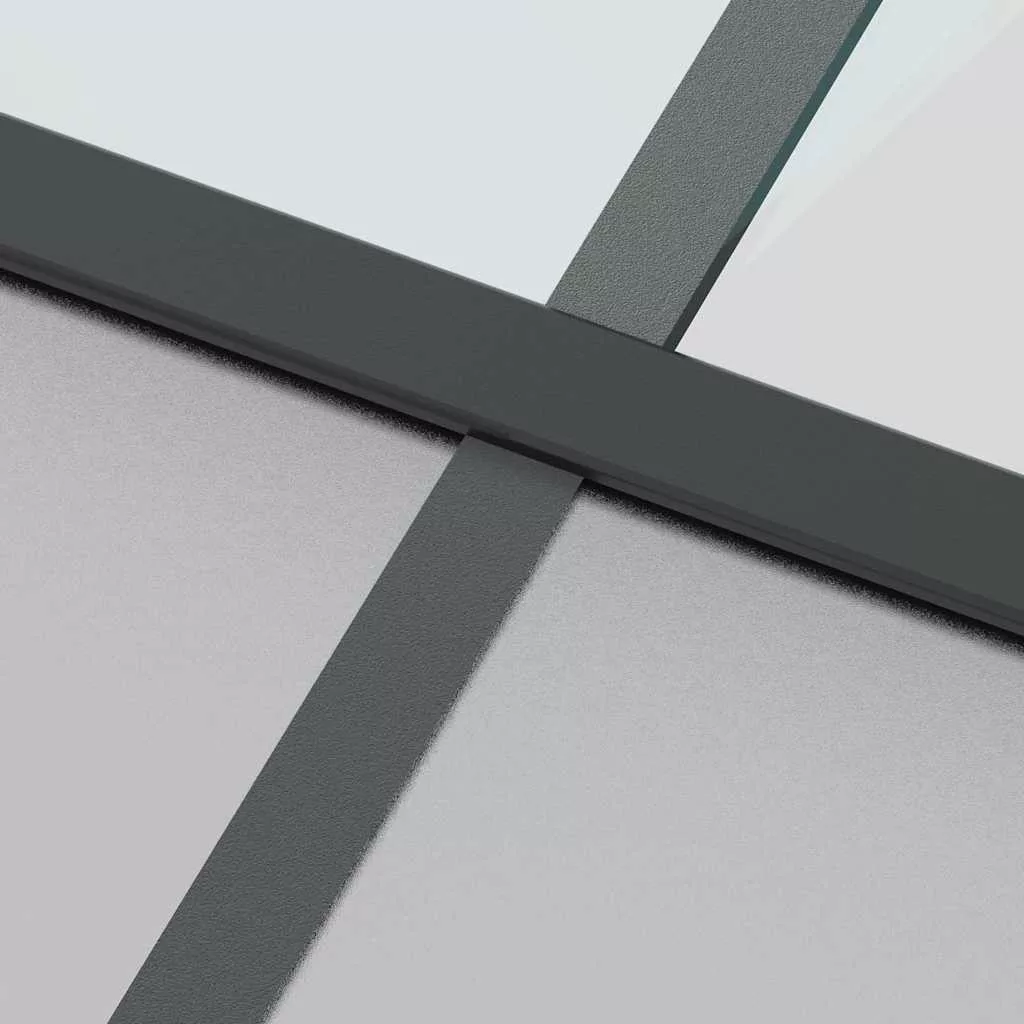 - Praktikus kialakítás: Az ajtópanel matt üvegből és átlátszó üvegből készült, amely nem csak a fényt ereszti át, de megfelelő magánéletet is biztosít.