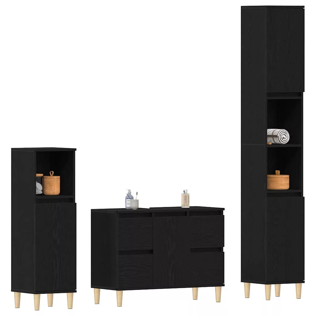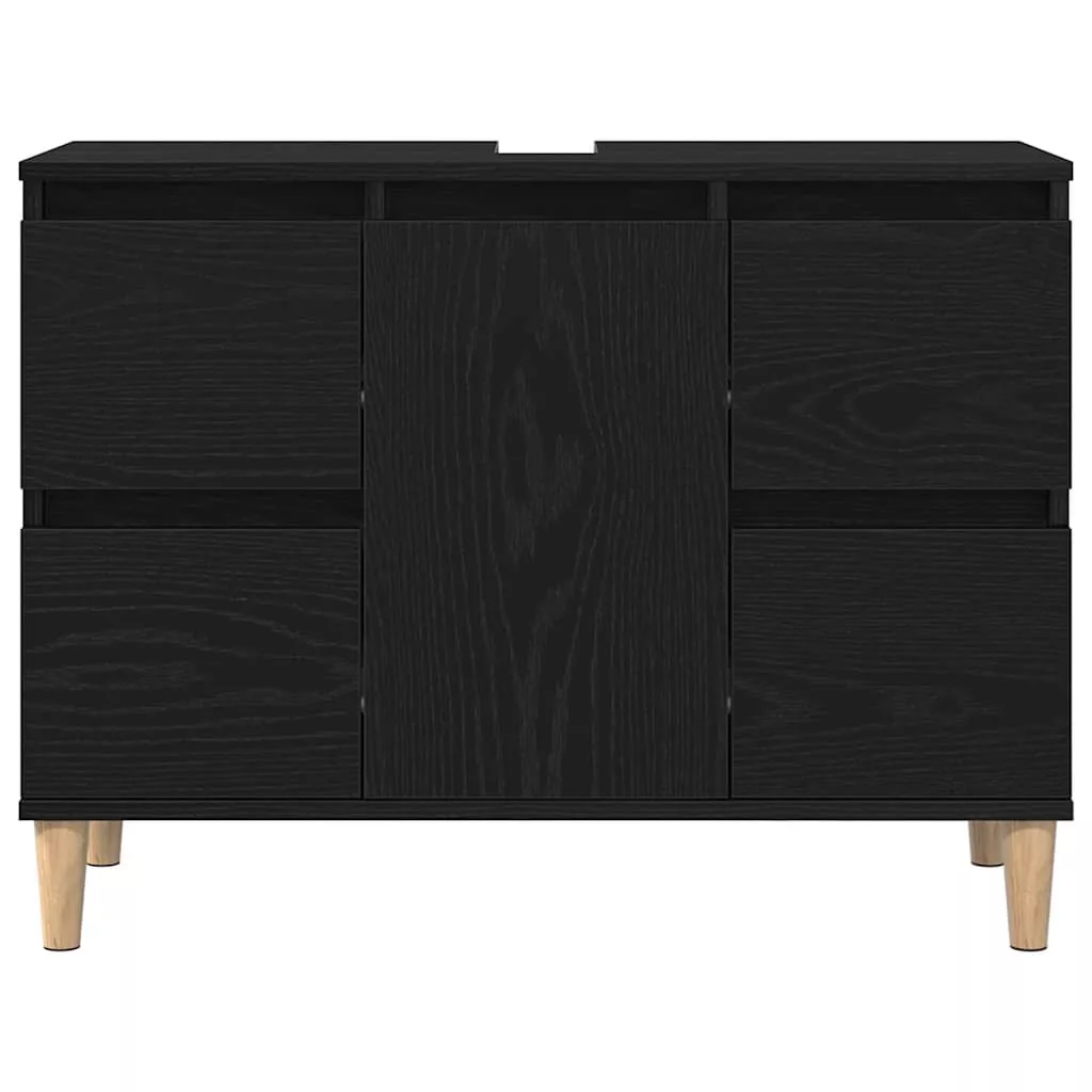 - Alkatrészek: A szett sima felületű, flush ajtókkal van ellátva, melyek engineered wood-ból készültek, így egy elegáns, megszakítás nélküli felületet mutatnak. Az engineered wood lábak szilárd támogatást nyújtanak, növelve ezzel a bútor stabilitását és tartósságát. A szett praktikus mindennapi használatra, kényelmesen elhelyezve különböző fürdőszobai eszközöket.