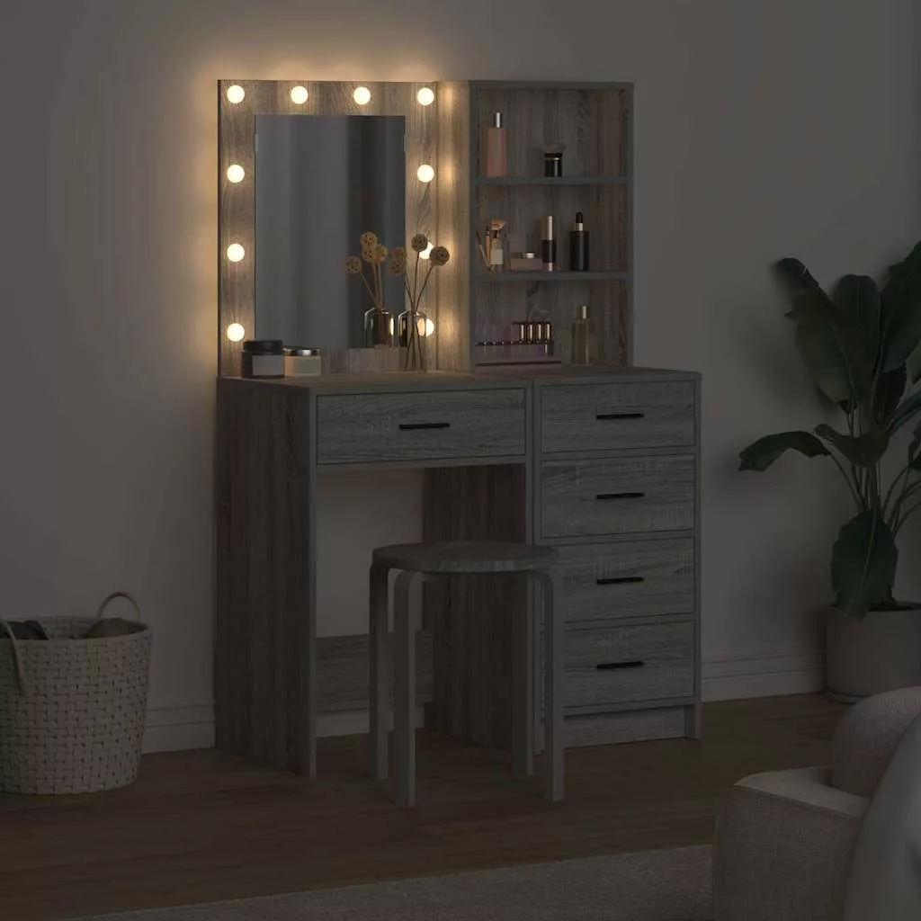 - Befoglalott Komponensek Rengeteget lehet tárolni a polcokon és fiókokban, amik szintén szerelt fából vannak, így rendezetten tarthatod a dolgaidat. A beépített LED világítás állítható fényt ad, így jól látsz mindent sminkelés közben.