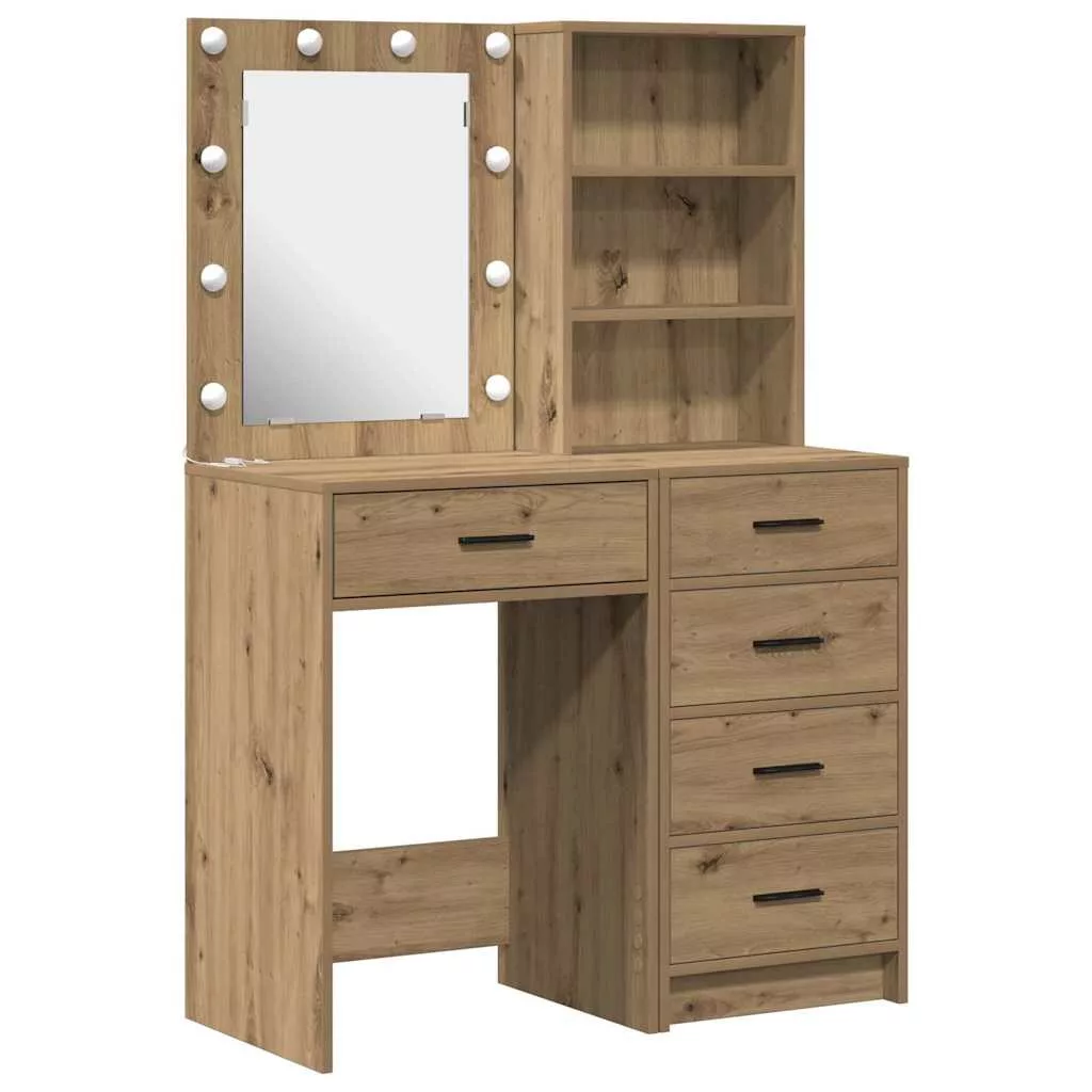 - Befoglalott Komponensek Rengeteget lehet tárolni a polcokon és fiókokban, amik szintén szerelt fából vannak, így rendezetten tarthatod a dolgaidat. A beépített LED világítás állítható fényt ad, így jól látsz mindent sminkelés közben.