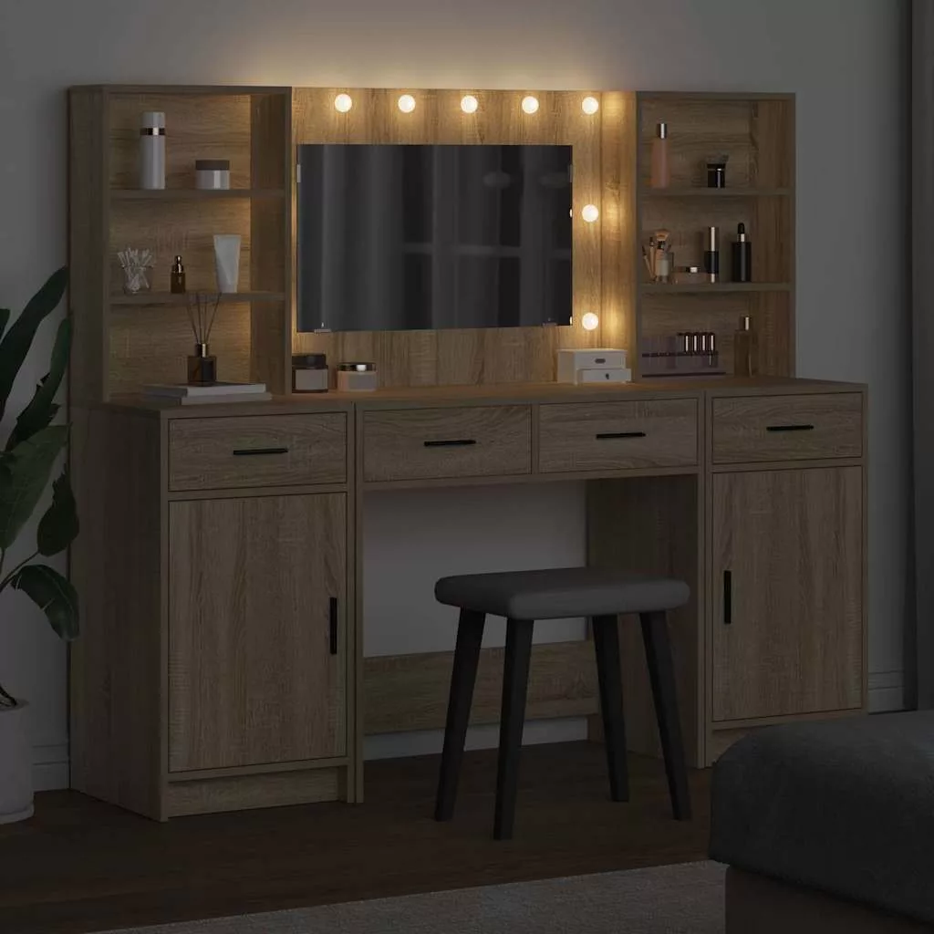 Ez a sminktükör szett stílusos kiegészítője lehet bármely modern hálószobának, kombinálva a divatot és a praktikus funkciókat. Beltéri használatra lett tervezve, 135 cm magas, így szinte bármilyen térbe elfér. Az mérnöki fa biztosítja a strapabíró felépítést, amit hosszú távon is használhatsz. Modern dizájnja letisztult vonalakból és minimalista stílusból áll, mindenféle belső stílust feldob. Akár egy nagy eseményre készülsz, akár csak a napi cuccaidat szeretnéd rendszerezni, ez a szett a legjobb társ a kényelem és elegancia kedvelőinek.