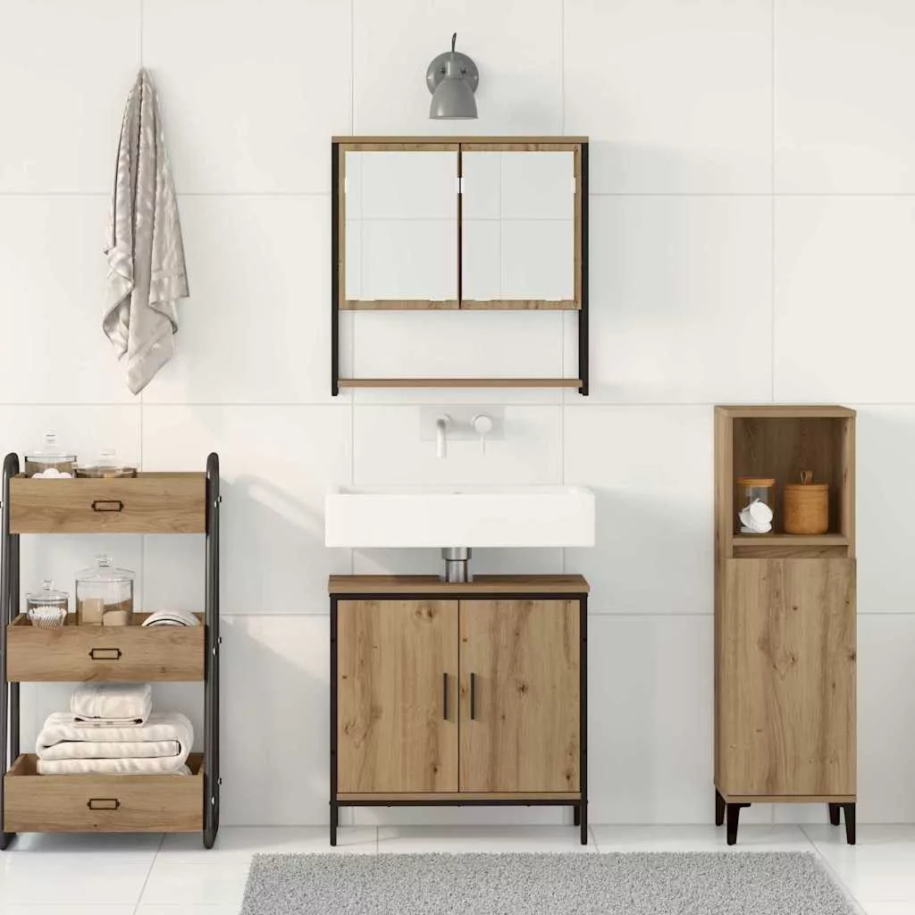 - Funkcionális komponensek: A szett egy mosdószekrényt és egy tükörszekrényt tartalmaz, amik rengeteg tárolóhelyet kínálnak. A mosdószekrény elég helyet ad a piperecikkeknek, míg a tükörszekrény polcokat rejt, így minden rendezett marad. Ez a kombináció maximálja a tárolást és a kényelmet.