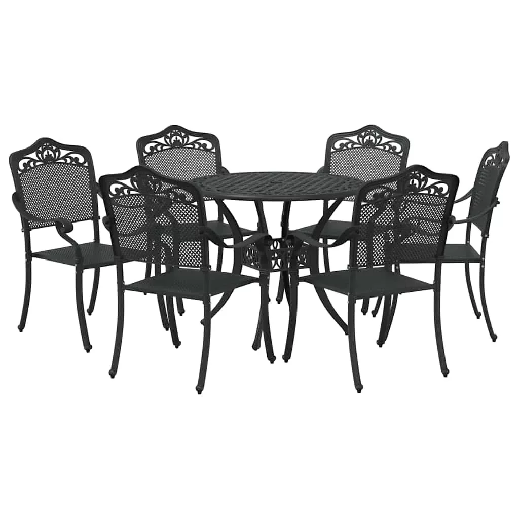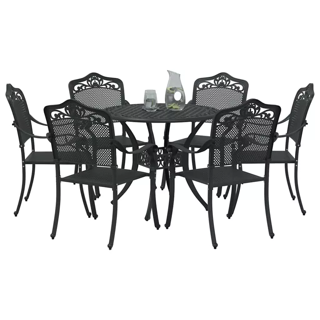 vidaXL Kert étkező szett 7 pcs Fekete Alumínium