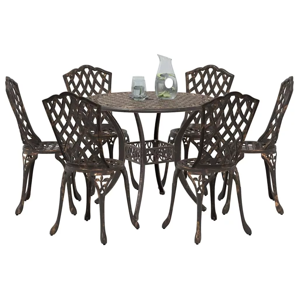 A Cast Aluminium kertibútor szett gyönyörű kiegészítője a kültéri kerteknek vagy teraszoknak. Klasszikus, hagyományos stílusa könnyen illeszkedik a különféle kültéri témákhoz, eleganciát és funkciót kínál minden alkalommal. Az alumínium megépítés nemcsak a kinézetét javítja, hanem a tartósságát is biztosítja. Kifejezetten a melegebb időben való használatra készült, és tökéletes választás laza vagy formális kültéri étkezésekhez is, ideális mindenkinek, aki kedveli a szabadtéri szórakozást.