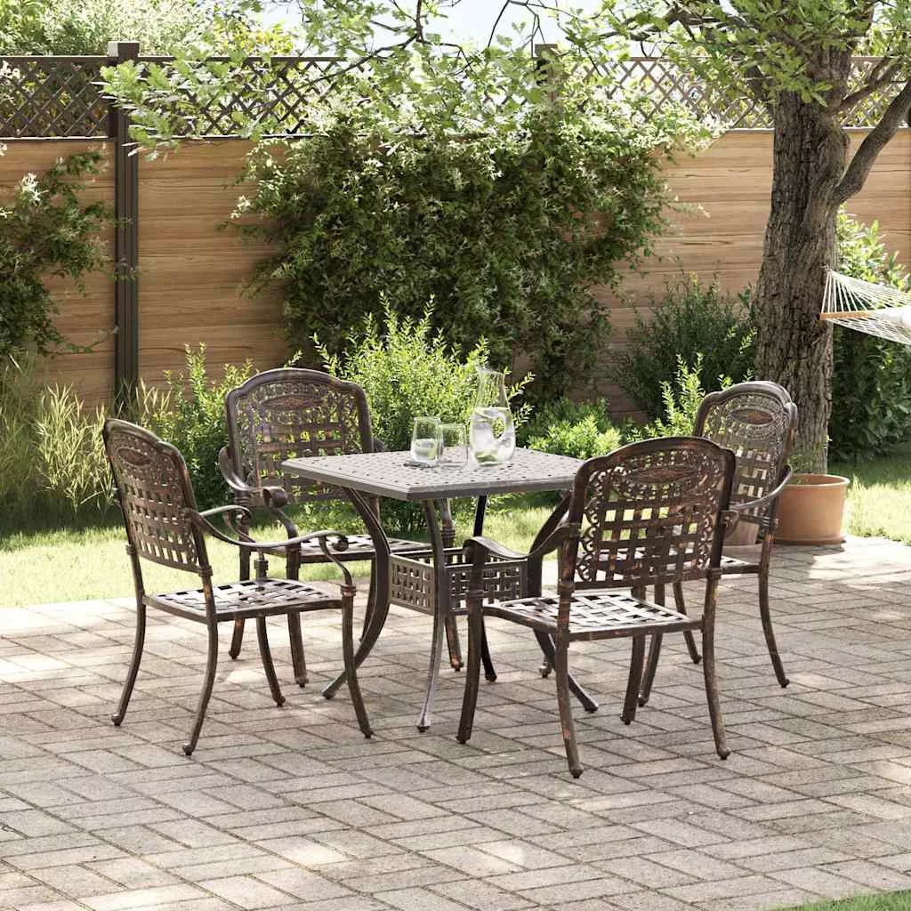 - Minőségi anyagok: Az öntött alumíniumnak köszönhetően a kertibútor szett masszív, texturált felülettel rendelkezik, amit öröm megérinteni. Az alumínium szerkezete elég erős ahhoz, hogy bírja a kültéri viszonyokat, így sokáig szép marad a kertedben.