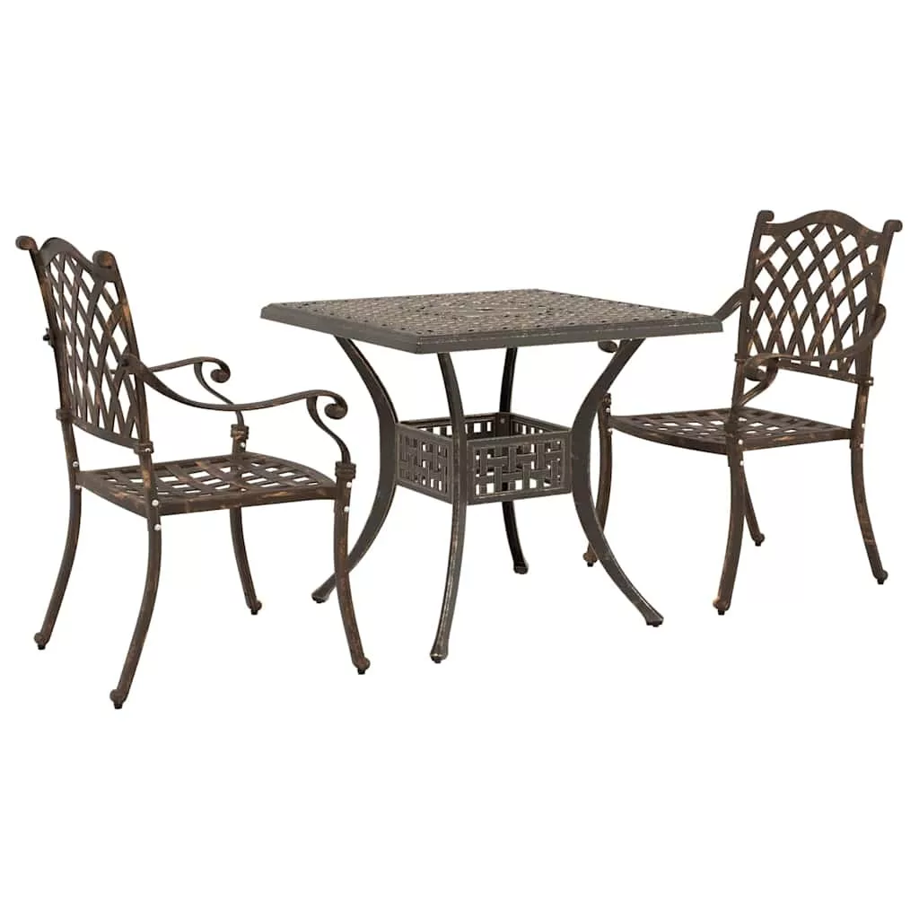 vidaXL Kerti asztalszett 3 pcs Bronz Öntött alumínium