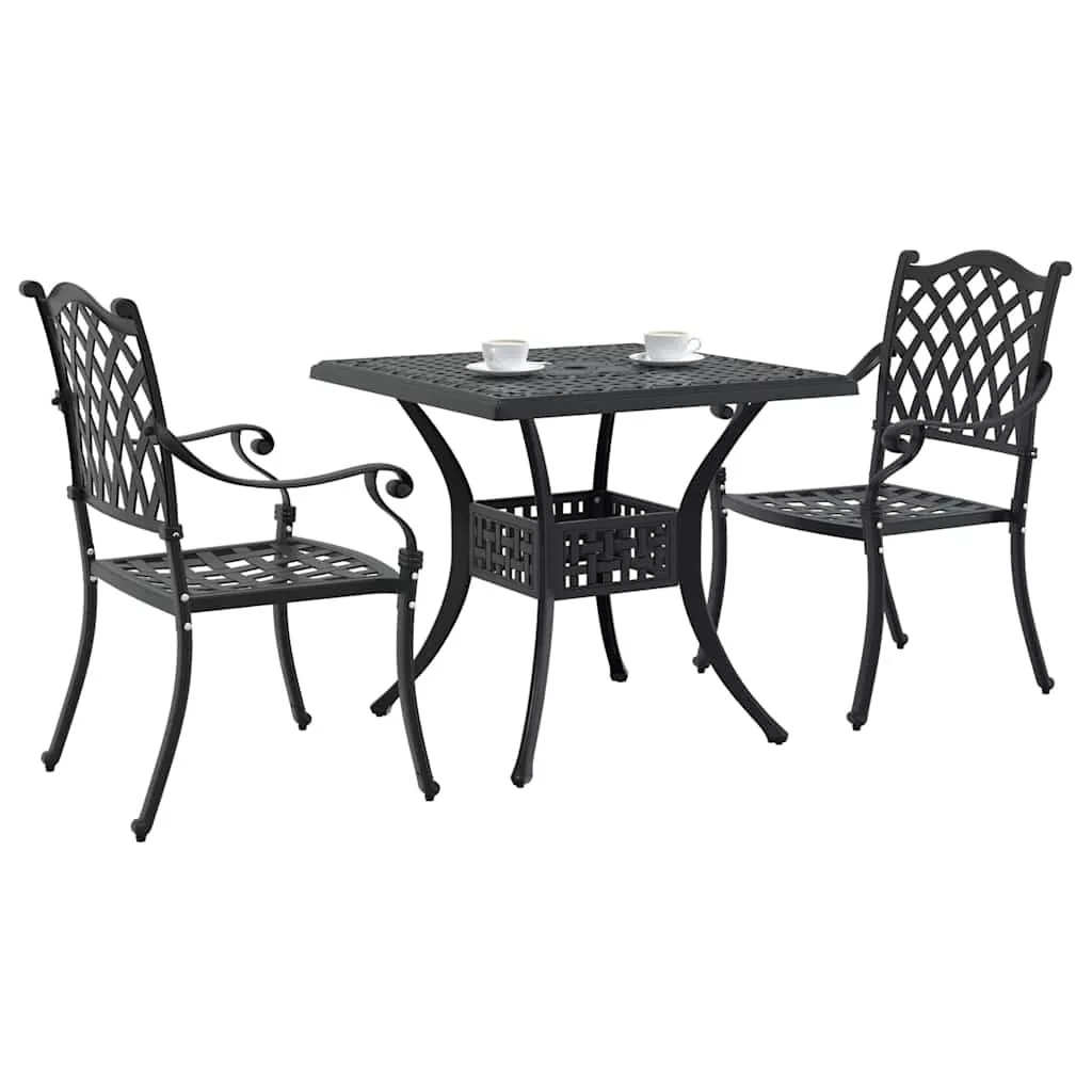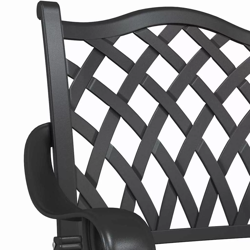 - Minőségi anyagok: Az öntött alumíniumnak köszönhetően a kertibútor szett masszív, texturált felülettel rendelkezik, amit öröm megérinteni. Az alumínium szerkezete elég erős ahhoz, hogy bírja a kültéri viszonyokat, így sokáig szép marad a kertedben.